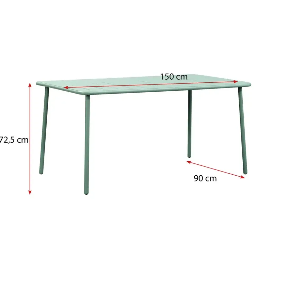 De tuintafel Vence is gemaakt van metaal met een lichtgroene afwerking. De tafel is weersbestendig en de bijpassende stoelen vind je in dezelfde serie. Met een afmeting van 72x150x90 cm is deze tafel geschikt voor 6 personen. Dus nodig de gasten maar vast uit en geniet met de tafel Vence metaal lichtgroen van de zomer.