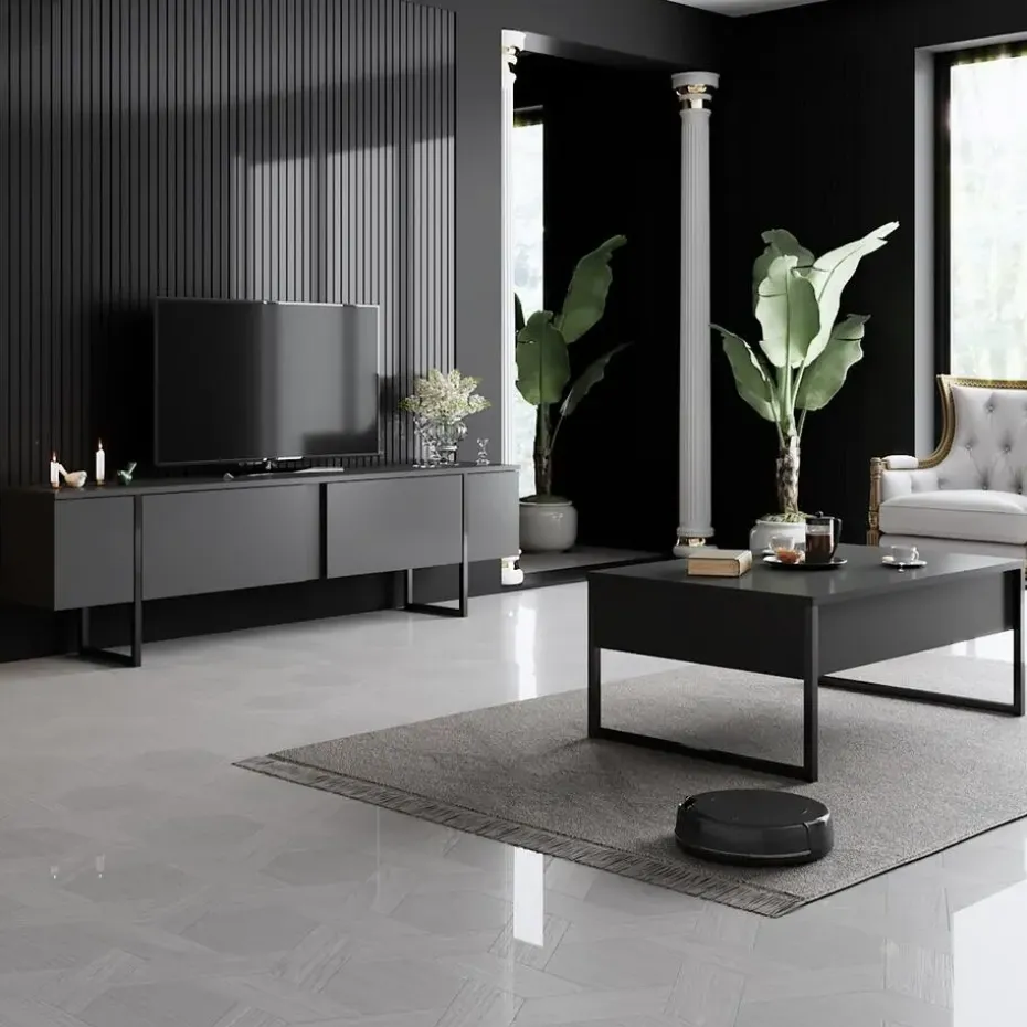 Dit tv-meubel vereist montage, maar met de meegeleverde handleiding is dit een fluitje van een cent. Kies tussen een klassieke zwarte of frisse witte afwerking om jouw woonruimte compleet te maken. Het metalen frame zorgt voor extra stabiliteit en een moderne touch.