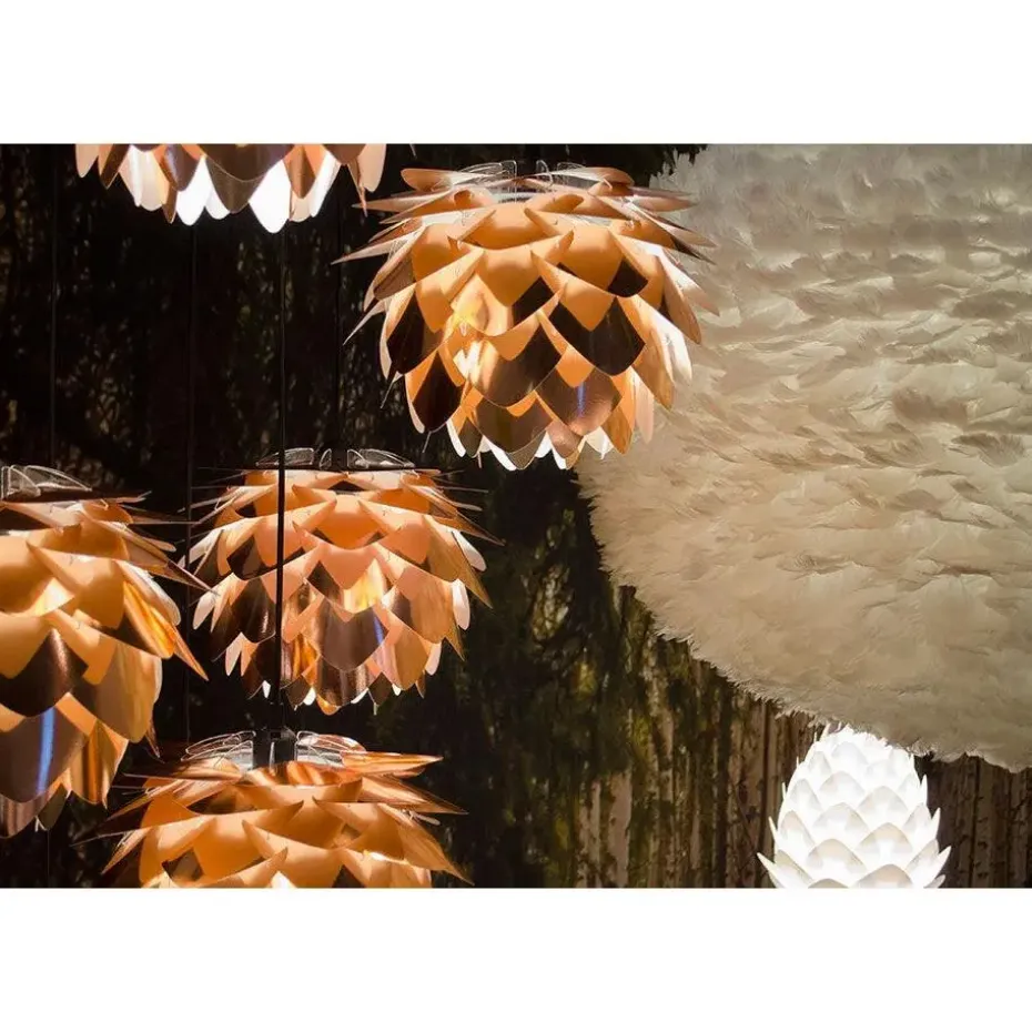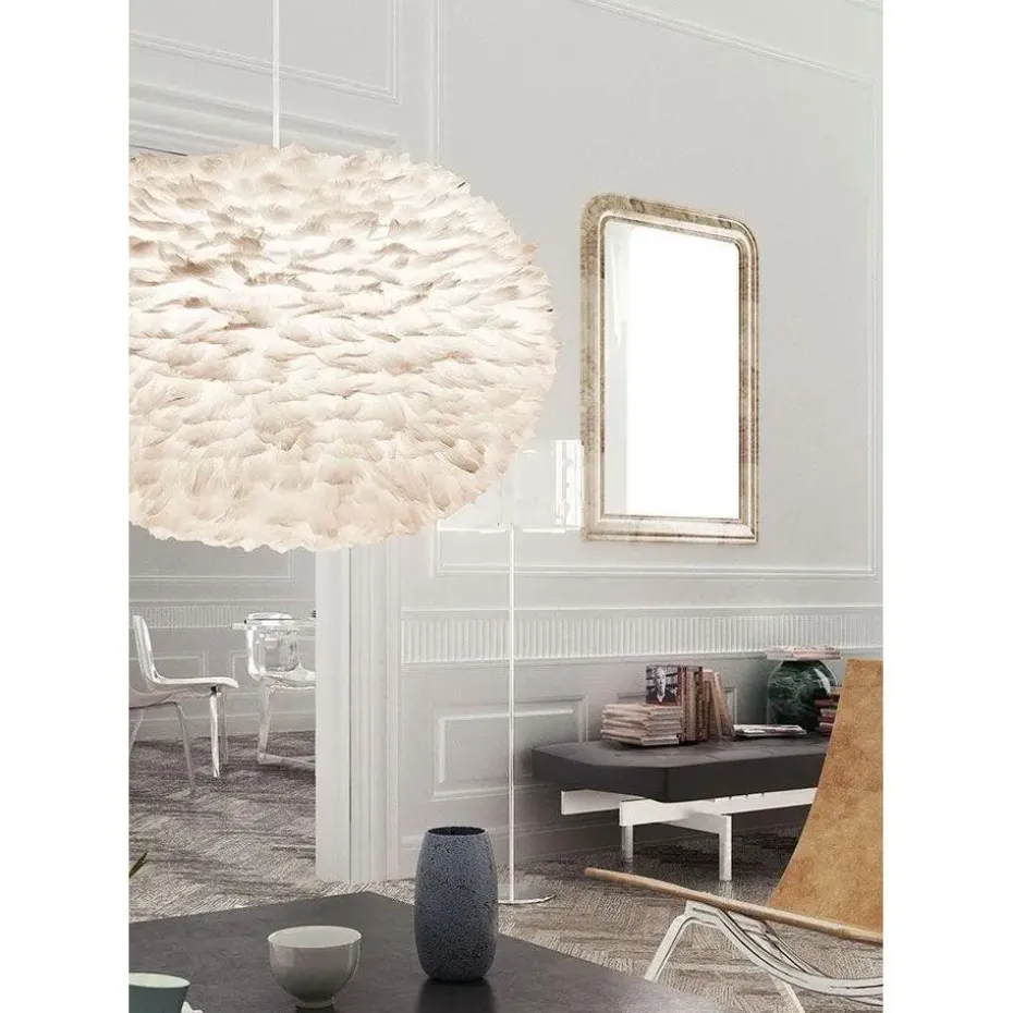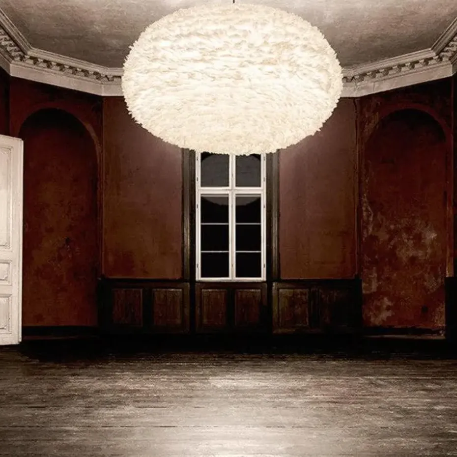 De hanglamp is gemaakt van echte ganzenveren. Bij wet is Umage verplicht, evenals andere grote retailers in de wereld, om te documenteren waar de ganzen en veren vandaan komen. Je kunt dus genieten van een prachtig lichteffect in je interieur, dat op milieuvriendelijke wijze tot stand is gebracht. Hang de lamp op in de slaapkamer, woonkamer of hal om direct sfeer te creëren. Bovendien onderhoud je de lamp goed door de lamp af en toe te föhnen, hierdoor blaas je gemakkelijk het stof van de veren en houd je ze luchtig!