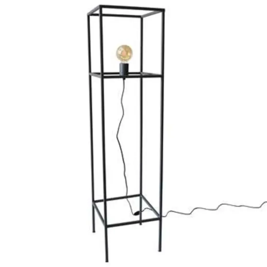 Metalen vloerlamp die is voorzien van een zwart stoffen snoer met schakelaar. De hoogte is 120 cm en de breedte is 30 cm. Geschikt voor een lichtbron E27 van maximaal 60 Watt (excl.).