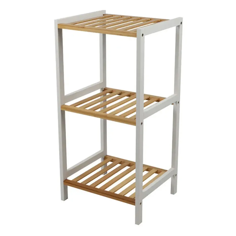 Douche/badkamer opberg rekje gemaakt van bamboe met 3 lagen. Afmetingen: 35 x 30 x 70 cm. Handig badkamer rekje voor het opbergen van shampoo, zeep en andere douche artikelen. Zelf te monteren. Gewicht: 1.6 kilo. Kleur: lichtbruin/wit. Merk: Urban Living.