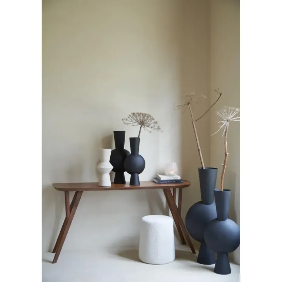 Verrijk je ruimte met de Kavandu vaas, ontworpen om prachtige veren of een opvallende grote tak te presenteren. De vaas heeft een moderne matte zwarte afwerking en een uniek taps toelopend ontwerp, waardoor een boeiend statement piece voor je interieur ontstaat. Perfect voor op de eettafel of als opvallende toevoeging aan de vensterbank, meet deze vaas 19×14,5×61,5cm.