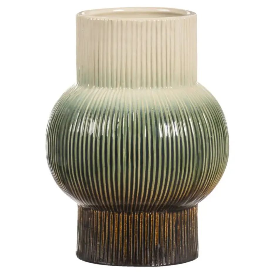 Creëer een aangename sfeer in huis met de keramieken Olivia vaas, een vaas met een prachtige, groene, ronde vorm en een afmeting van 18xØ13 cm.
