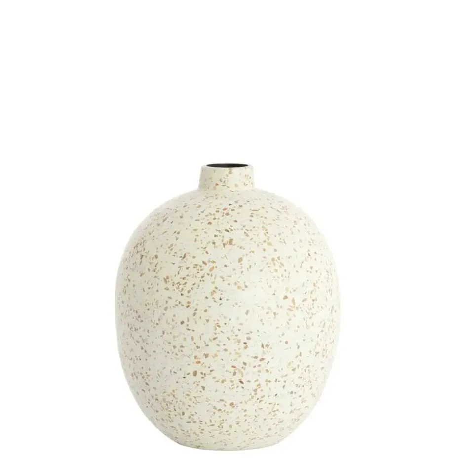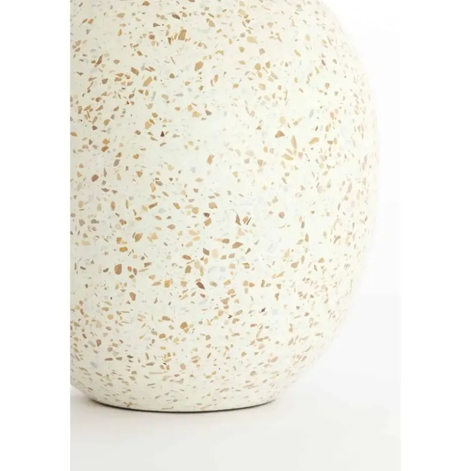 De Orxeta vaas in terrazzo crème is een ode aan natuurlijke elegantie. Met een hoogte van 34 cm en een diameter van 28 cm heeft deze vaas een robuuste, klassieke vorm die rust en verfijning uitstraalt. Het terrazzo materiaal, met zijn subtiele spikkels van steenkorrels, zorgt voor een ambachtelijke en tijdloze uitstraling. De Orxeta past perfect binnen Japandi, Scandinavische en Mediterrane interieurs, waar natuurlijke texturen de hoofdrol spelen. Gebruik haar solo als statement piece of vul met een paar zijden takken voor een subtiele, harmonieuze look. De Orxeta terrazzo brengt warmte, authenticiteit en elegantie in huis een stijlvol designobject dat moeiteloos charme en karakter toevoegt aan elke ruimte.