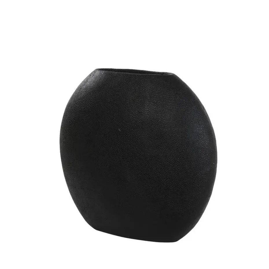 De Rayskin vaas is een decoratieve, platte vaas met een stijlvol rond design. De smalle opening is perfect voor een paar takken of pluimen, voor een simpele maar interessante look. Voeg een vleugje kleur toe met kunstbloemen om zijn charme te vergroten. Met een mooi stippenpatroon valt deze zwarte vaas op op een vensterbank of bijzettafel. De afmetingen zijn 49,5x20x45 cm, waardoor hij een veelzijdige en stijlvolle toevoeging is voor elke ruimte.