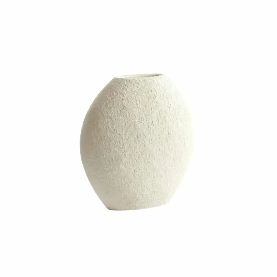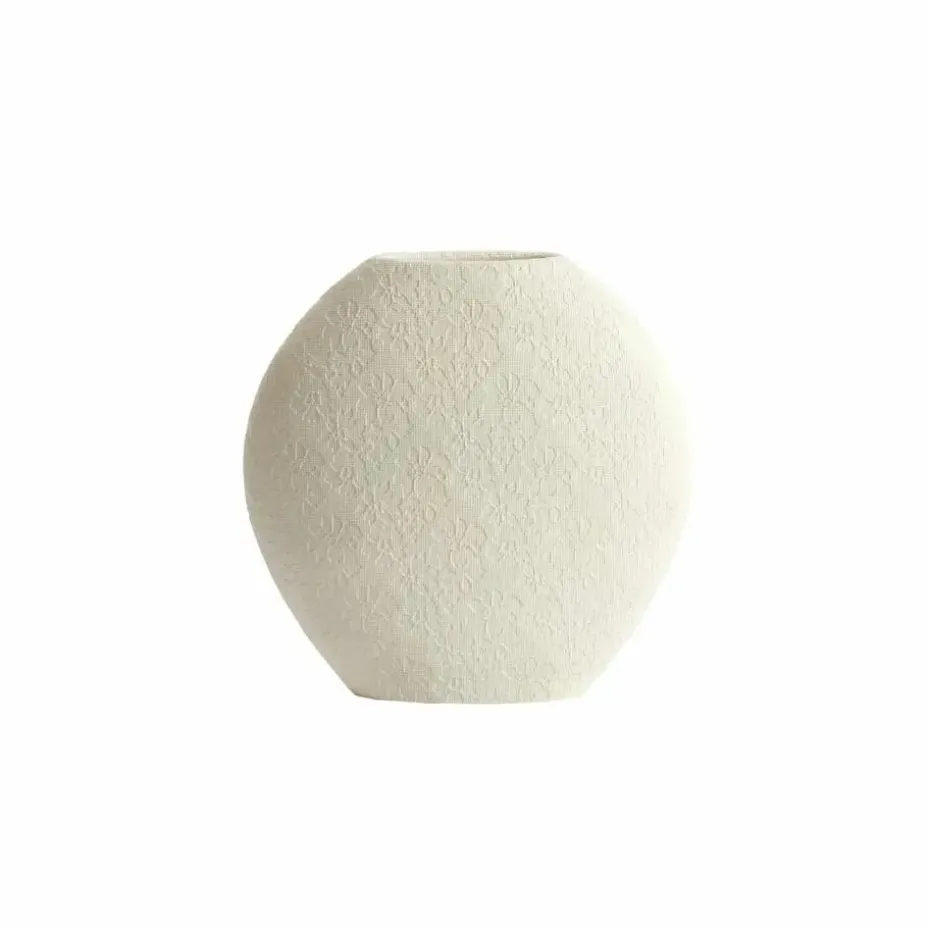Laat je interieur spreken met vaas Renda. De vaas heeft een uniek ontwerp, dat moeiteloos de aandacht trekt, zelfs zonder bloemen. De crèmekleurige afwerking en bloemenprint op de vaas maken van deze vaas een prachtig statement stuk voor elke ruimte. Combineer deze vaas met wat takken of droogbloemen voor een modern geheel. De vaas heeft een afmeting van 29,5x10x30 cm.