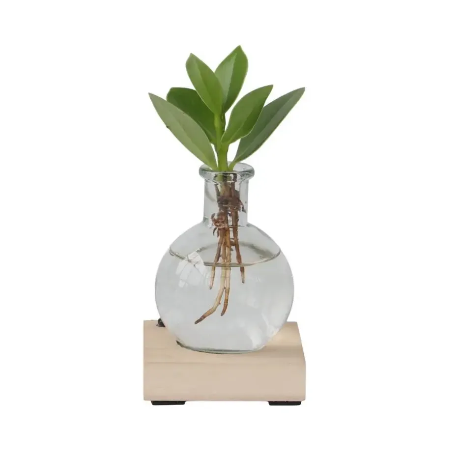Clusia’s zijn zeer sterke en robuuste planten met stevige, leerachtige bladeren die ook goed in water groeien. De wortels zullen zich aanpassen aan het water en waterwortels ontwikkelen. De plant staat het liefst op een lichte plek, maar niet in de volle zon. Vul het glas met water tot aan de groene stengel van de Clusia, zodat de wortels altijd onder water staan. Ververs het water eens in de twee weken en zo eenvoudig is het!