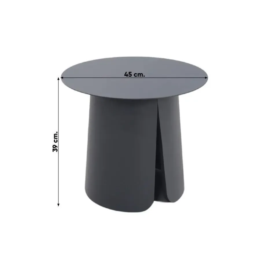 De Velora koffietafel Ø45 cm isde ideale keuze voor een compacte loungehoek.Dankzij het lichte aluminium in de kleur ‘royal grey’ heeft deze tafel eenstoere uitstraling, terwijl de massieve onderkant metsplit zorgt voor een modern en uniek design. Door het lichte gewicht is de tafelgemakkelijk te verplaatsen, perfect om flexibel je loungehoek in te richten.Met een diameter van 45 cm past deze tafel perfect in kleinere ruimtes of als subtiele toevoeging aan je tuinmeubilair.Voor een speels effect kun je de tafel combineren met de grotere formatenvan deVelora-serie: Ø70 cm en Ø90 cm. Zo creëer je een stijlvol en praktische set die bij elke tuin past!