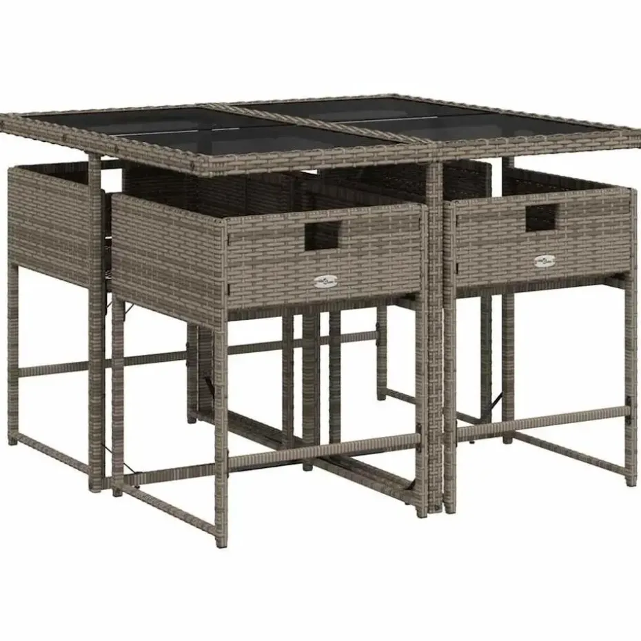 - Materiaal: PE-rattan, gepoedercoat staal en gehard glas