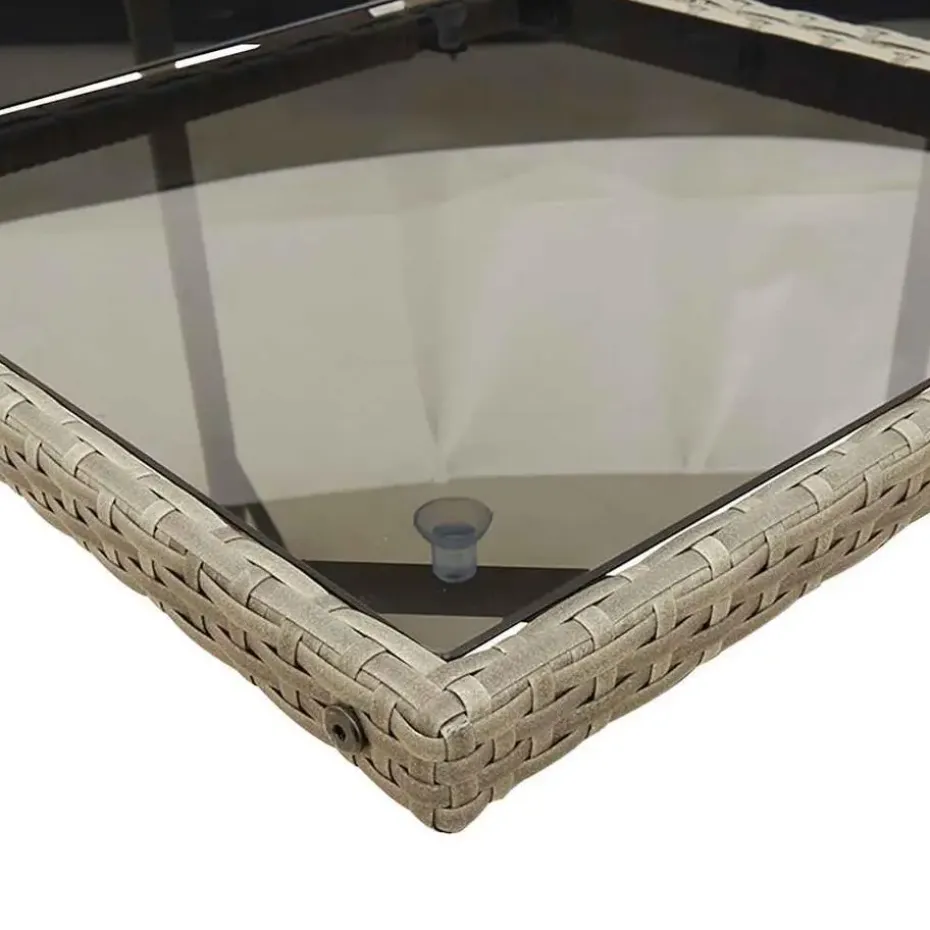 - Glazen tafelblad: het blad van de tuintafel is gemaakt van sterk en duurzaam gehard glas, waardoor het gemakkelijk schoon te maken is met een vochtige doek. Het voegt ook een vleugje elegantie toe aan je buitenruimte.