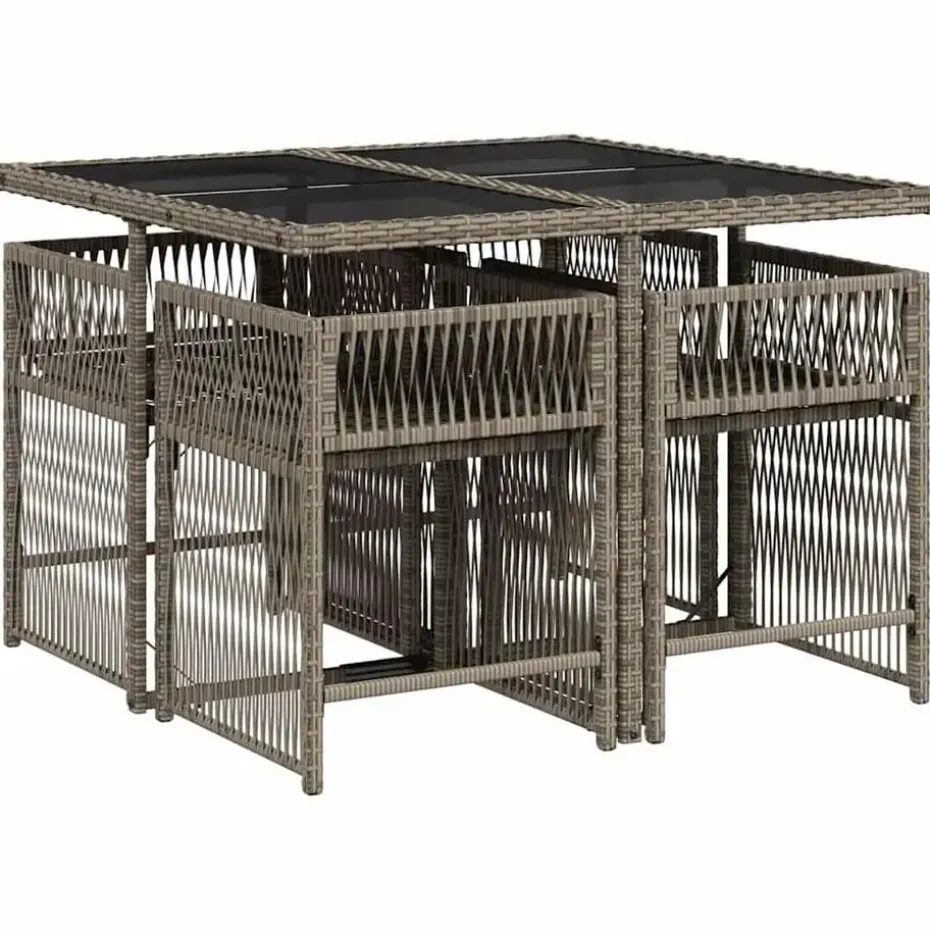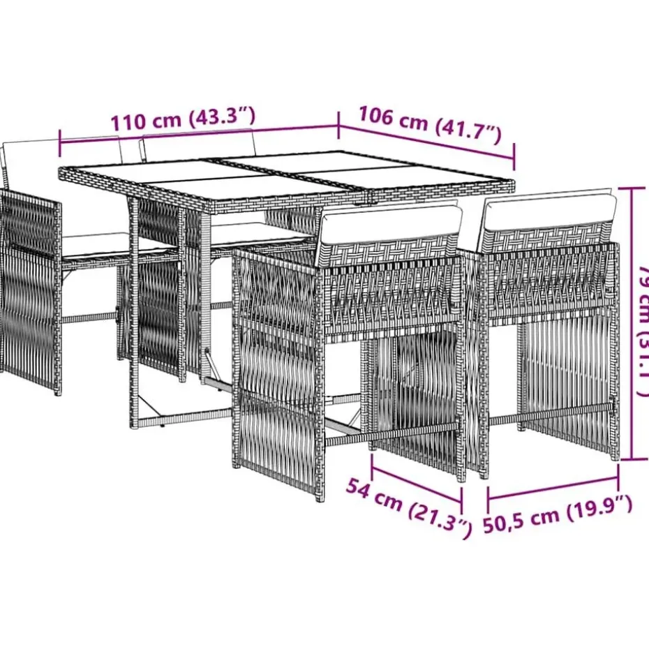 - Materiaal: PE-rattan, gepoedercoat staal en gehard glas