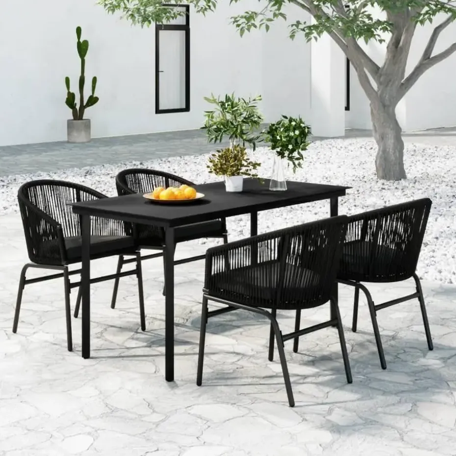 Deze tuinset heeft een gepoedercoat stalen frame, waardoor hij stevig, stabiel en perfect voor buitengebruik is. Het gladde, glazen tafelblad is gemakkelijk schoon te maken met een vochtige doek en perfect voor het plaatsen van maaltijden, drankjes of decoratieve items. De stoelen zijn gemaakt van PVC-rattan, waardoor ze duurzaam en bestand tegen weer en uv-stralen zijn. De afneembare, dik gevoerde kussens dragen bij aan het zitcomfort.