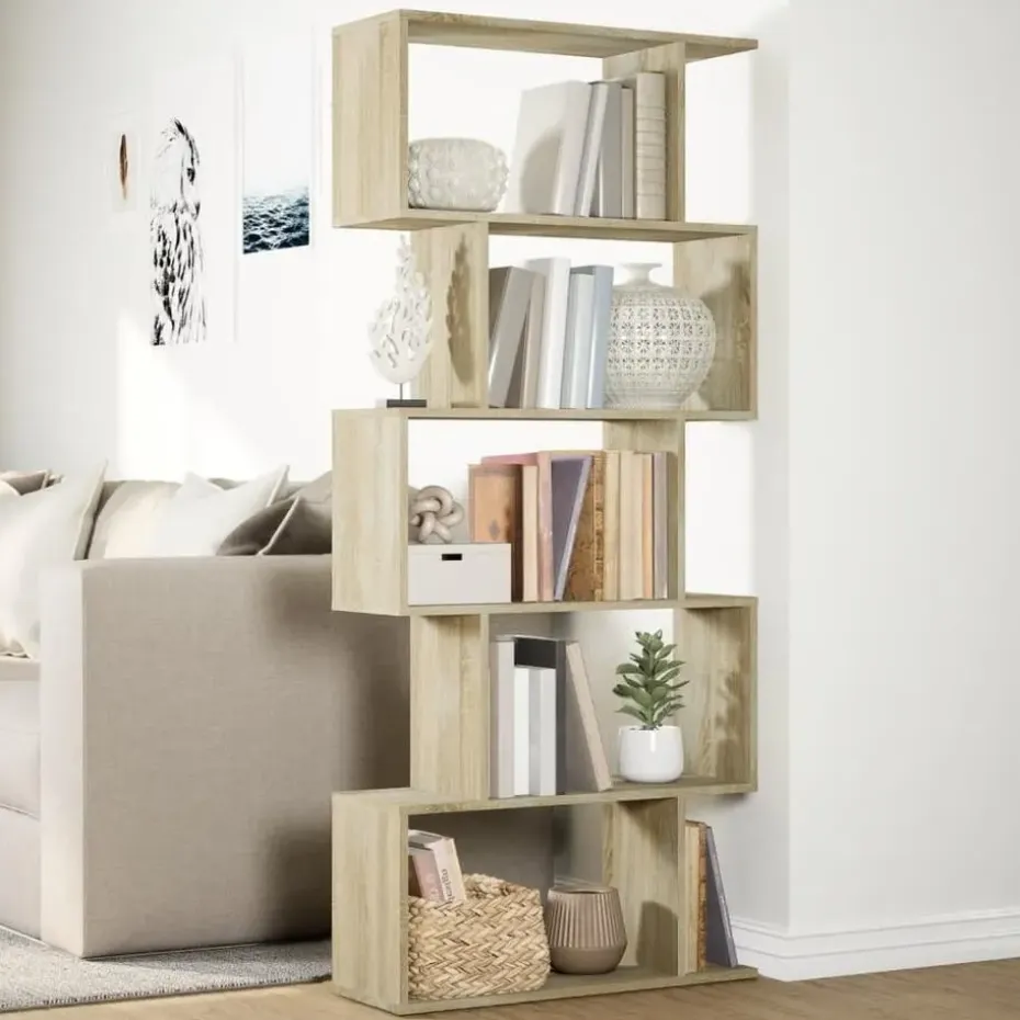 - Voldoende opbergruimte: de boekenkast heeft verspringende opbergvakken, die voldoende ruimte bieden voor je boeken of decoraties. Je kunt er ook voor kiezen om kleinere items op de randen van de schappen te zetten, zodat je optimaal gebruik maakt van de ruimte en je spullen netjes geordend blijven.