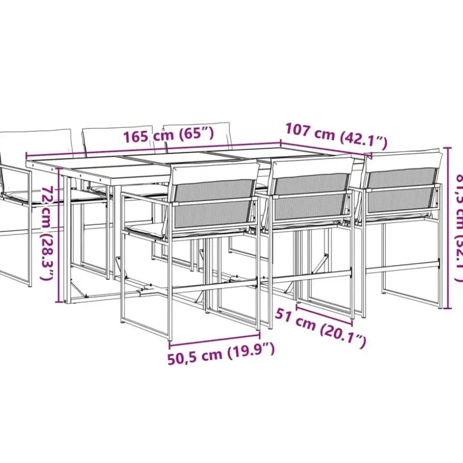- Afmetingen tafel: 165 x 107 x 72 cm (L x B x H)