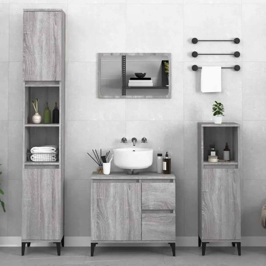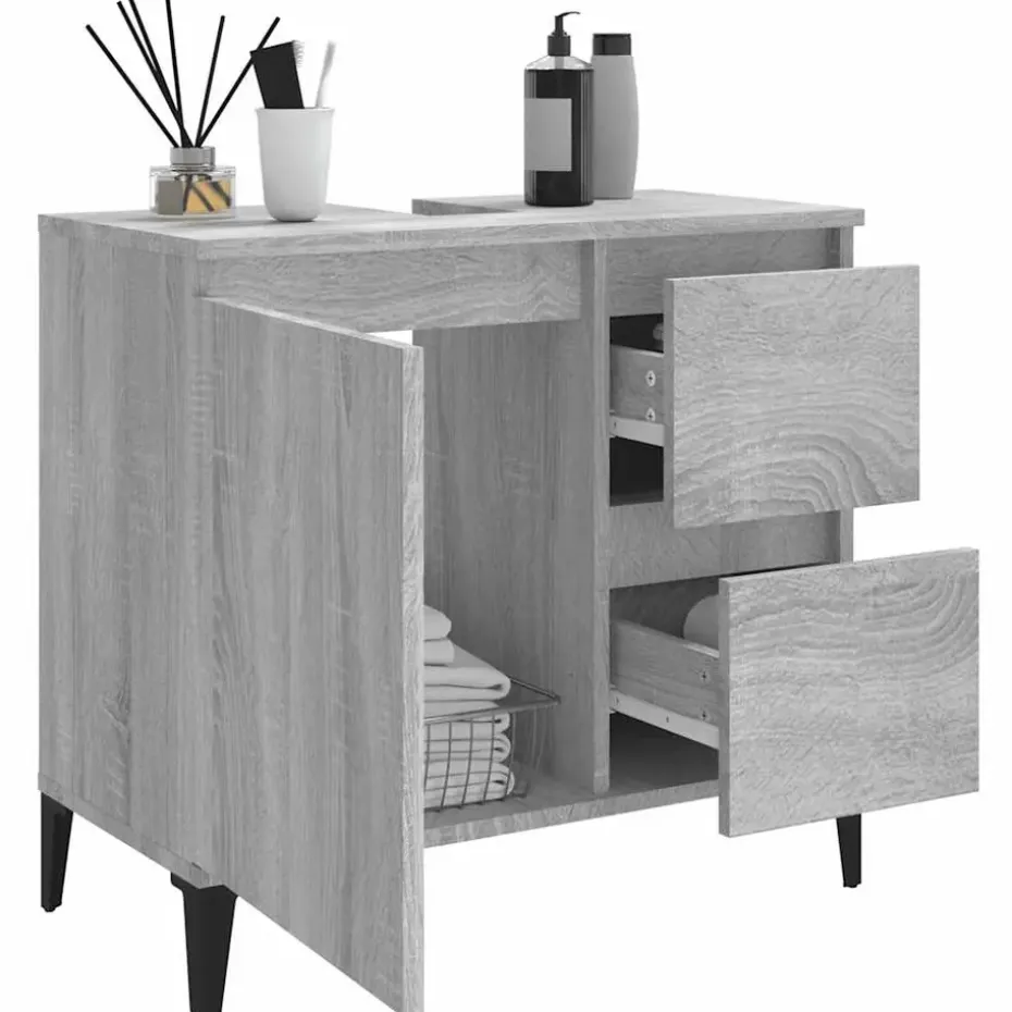 - Metalen poten: de metalen poten bieden de badkamerkast stevigheid en stabiliteit.