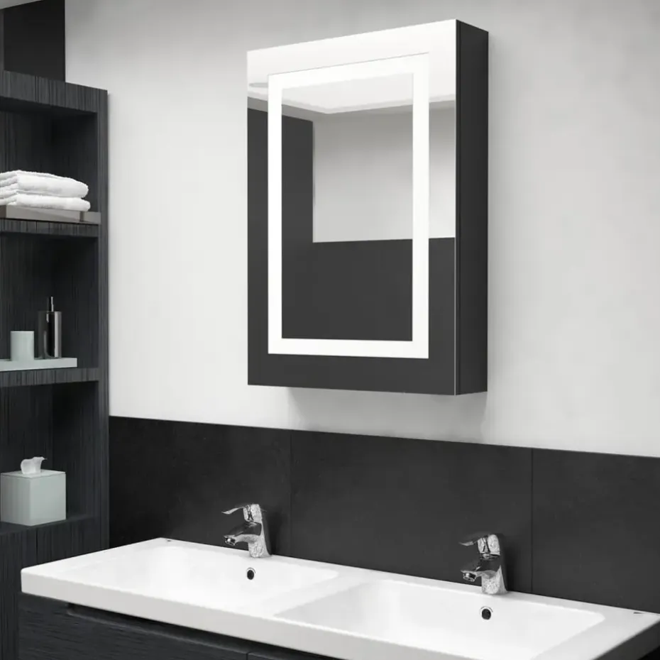 vidaXL Badkamerkast met spiegel LED 50x13x70 cm glanzend zwart