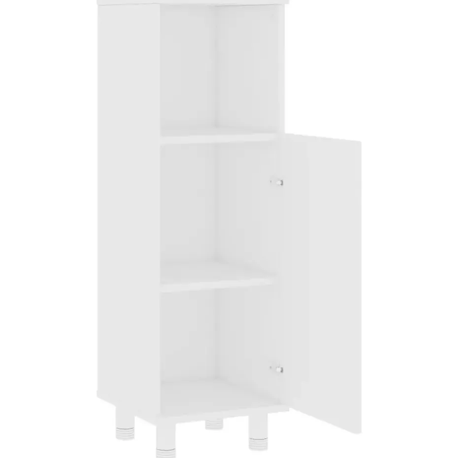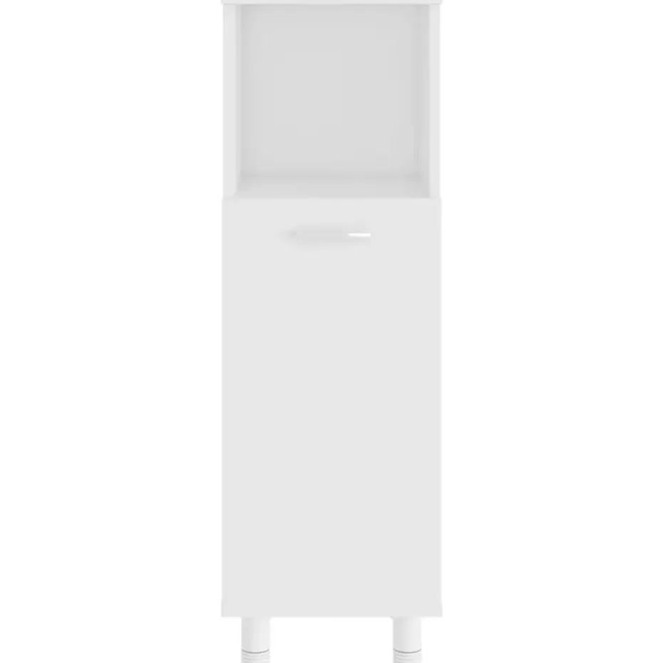Deze chique kast is gemaakt van bewerkt hout, waardoor hij stevig en stabiel is. Voldoende opbergruimte: de badkamerkast heeft 3 vakken en 1 deur, waardoor je verschillende opbergopties en extra ruimte hebt om dingen in je badkamer op te bergen. De deur heeft een handgreep voor gemakkelijk openen en sluiten. De kast is eenvoudig schoon te maken met een vochtige doek.