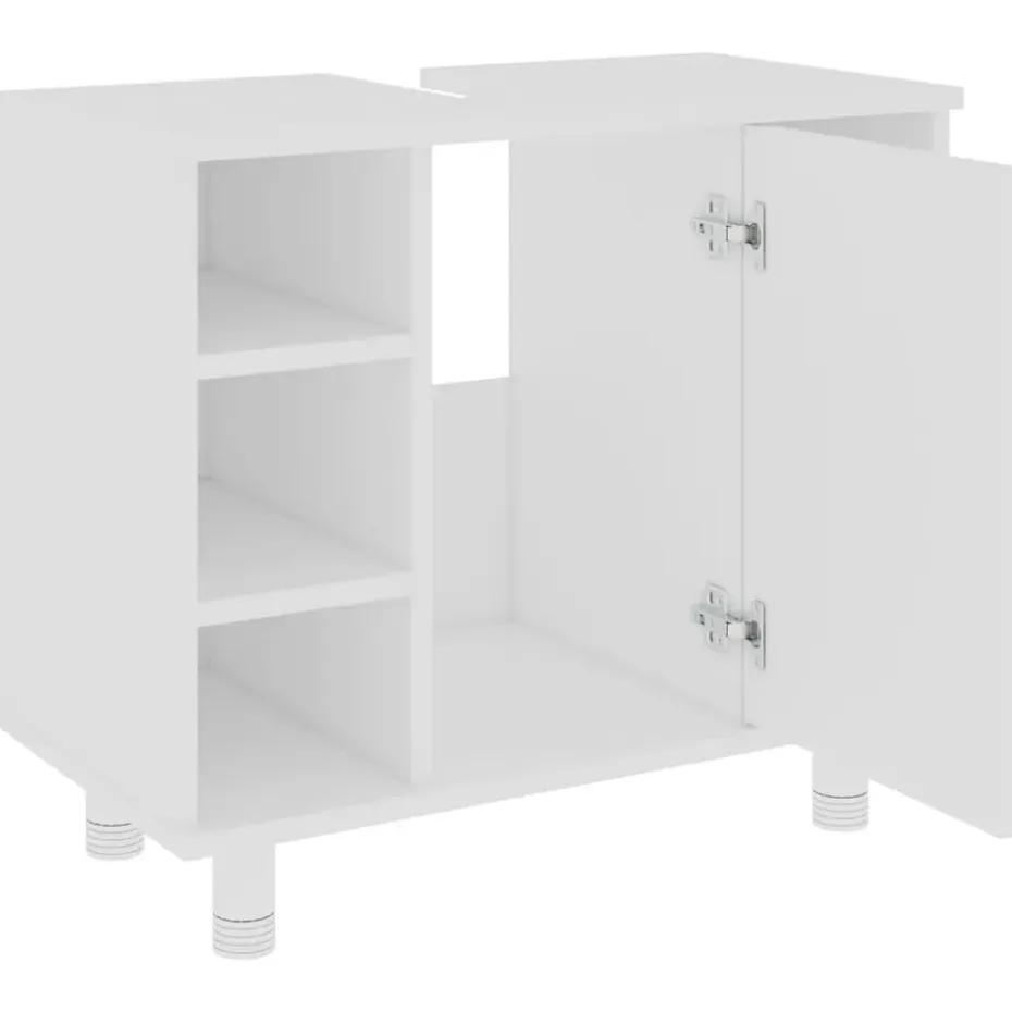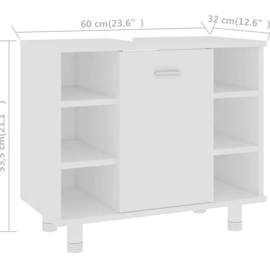 Deze chique kast is gemaakt van bewerkt hout, waardoor hij stevig en stabiel is. De opbergkast heeft 7 vakken en 1 deur, waardoor je verschillende opbergopties en extra ruimte hebt om spullen in je badkamer op te bergen. De deur heeft een handgreep voor gemakkelijk openen en sluiten. De kast is eenvoudig schoon te maken met een vochtige doek.