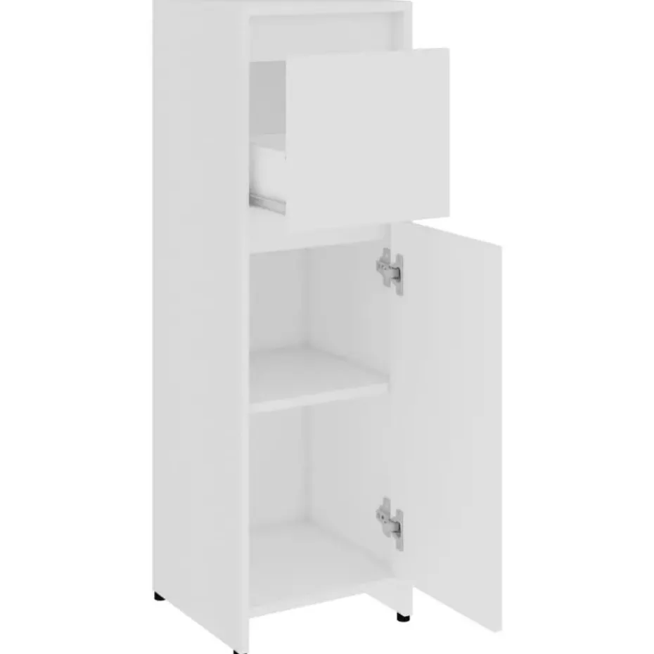 Deze chique kast is gemaakt van bewerkt hout, waardoor hij stevig en stabiel is. Voldoende opbergruimte: de badkamerkast heeft 2 vakken, 1 lade en 1 deur, waardoor je verschillende opbergopties en extra ruimte hebt om spullen in je badkamer op te bergen. De kast is eenvoudig schoon te maken met een vochtige doek.