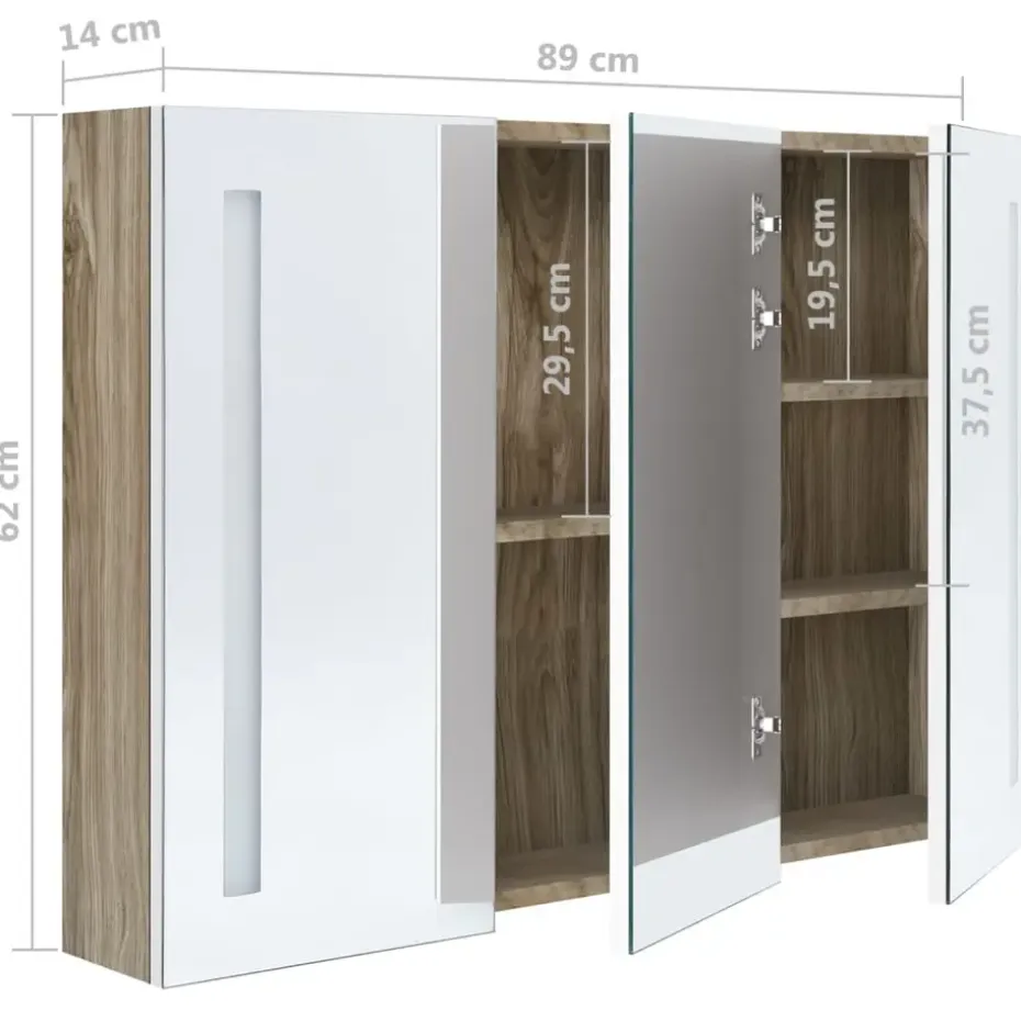 Het kastje is gemaakt van hoogwaardig MDF met melamine-afwerking waardoor hij zeer duurzaam is. Dankzij de energiezuinige LED-lichtstrips is er genoeg licht om jezelf op te maken en je huid te verzorgen. Ze verlichten zowel de ruimte als jou. Het kastje heeft 3 schappen die voldoende ruimte bieden voor al je toiletartikelen en schoonheidsaccessoires. Je kan het licht eenvoudig in-/uitschakelen met de knop aan de onderkant. Het kastje is trendy en functioneel, en is een blikvanger in elke ruimte!