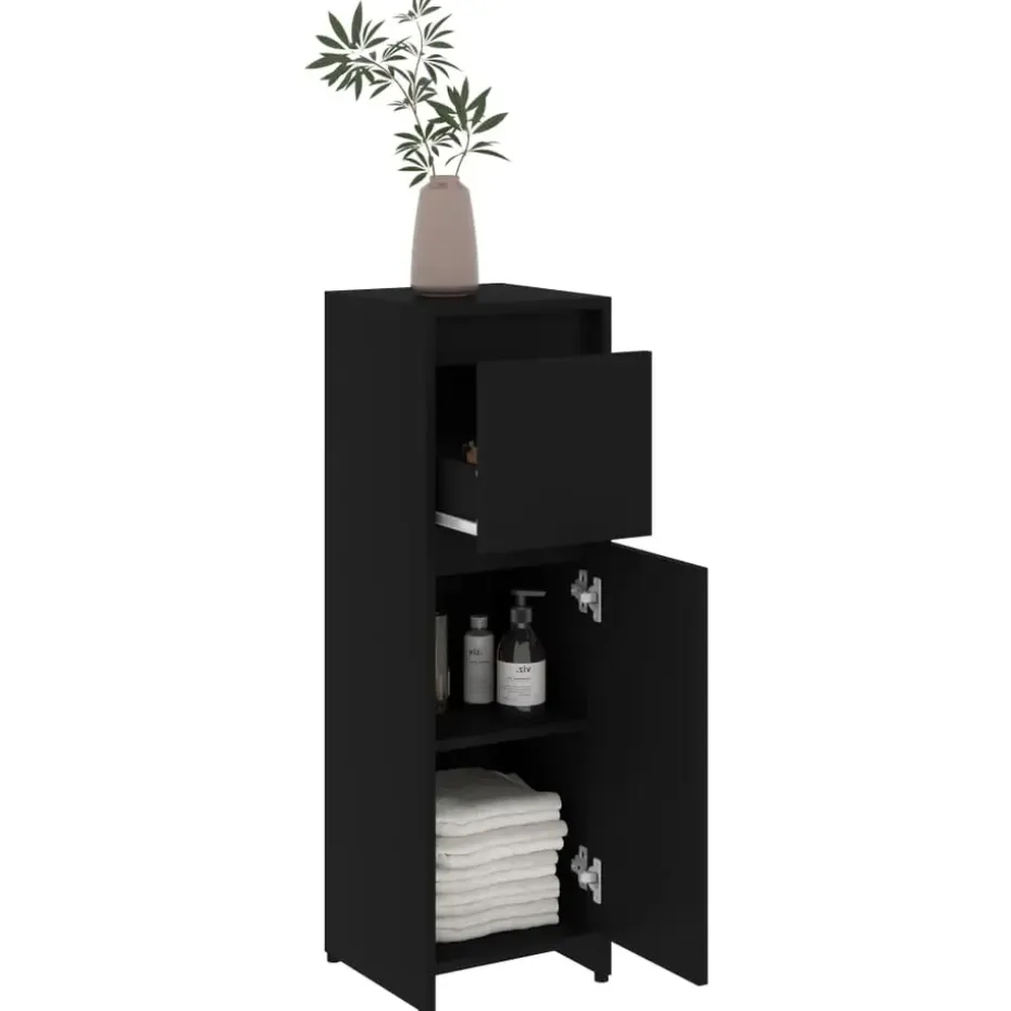 Deze chique kast is gemaakt van bewerkt hout, waardoor hij stevig en stabiel is. Voldoende opbergruimte: de badkamerkast heeft 2 vakken, 1 lade en 1 deur, waardoor je verschillende opbergopties en extra ruimte hebt om spullen in je badkamer op te bergen. De kast is eenvoudig schoon te maken met een vochtige doek.