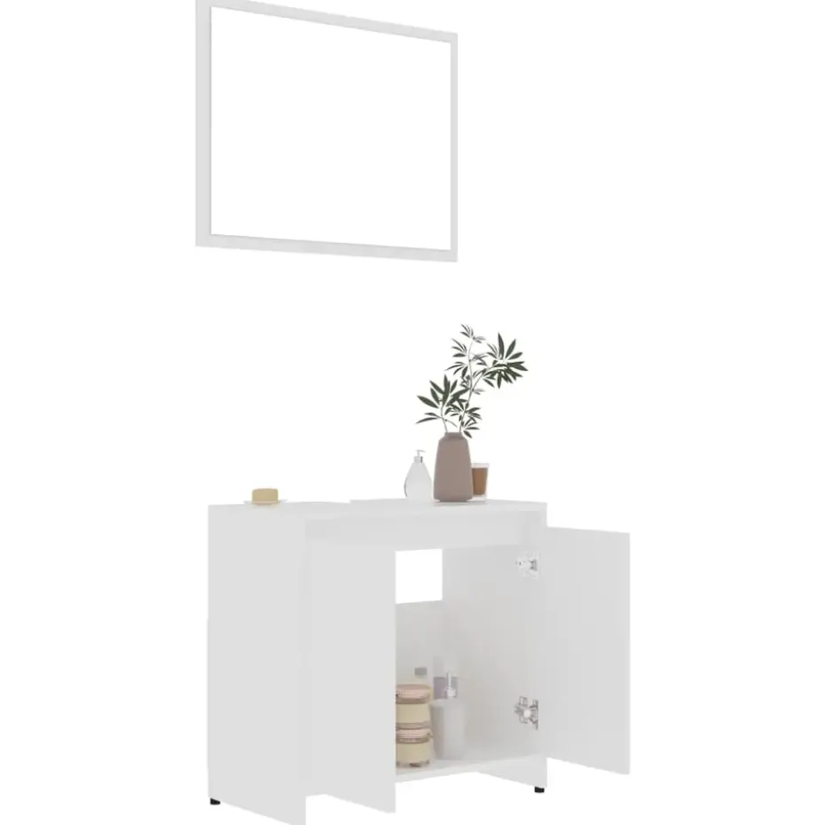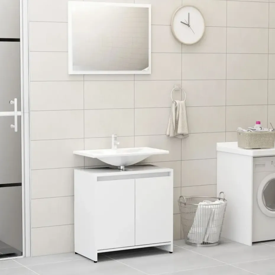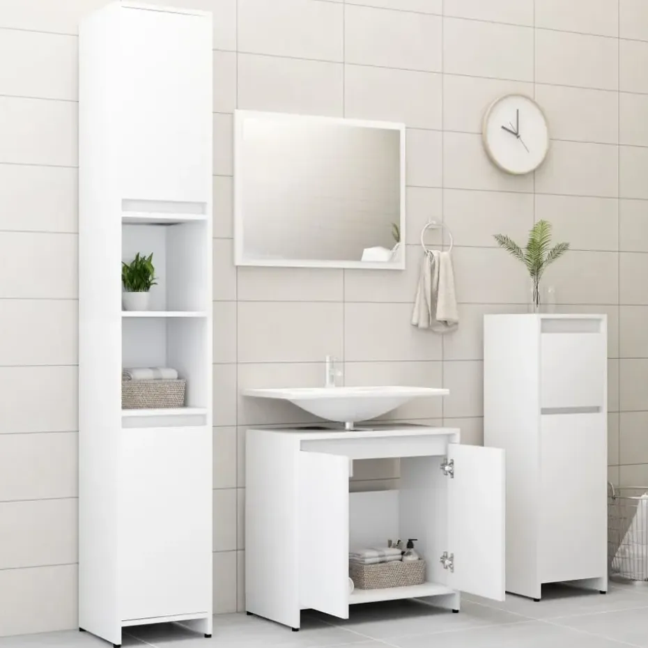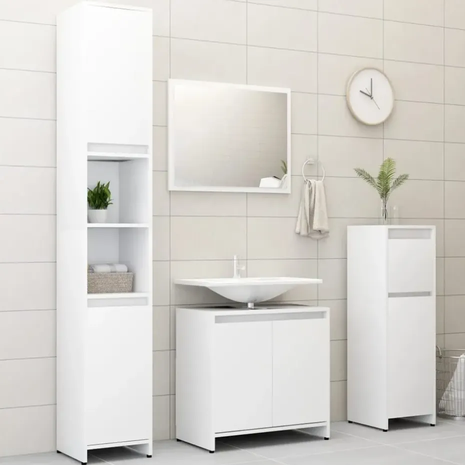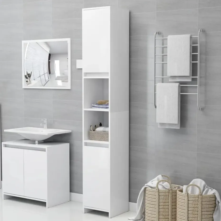 Deze stijlvolle meubelset, bestaande uit 1 hoge kast, 1 wastafelkast en 1 spiegel, heeft een prachtige, nette uitstraling en creëert extra opbergruimte in je badkamer.