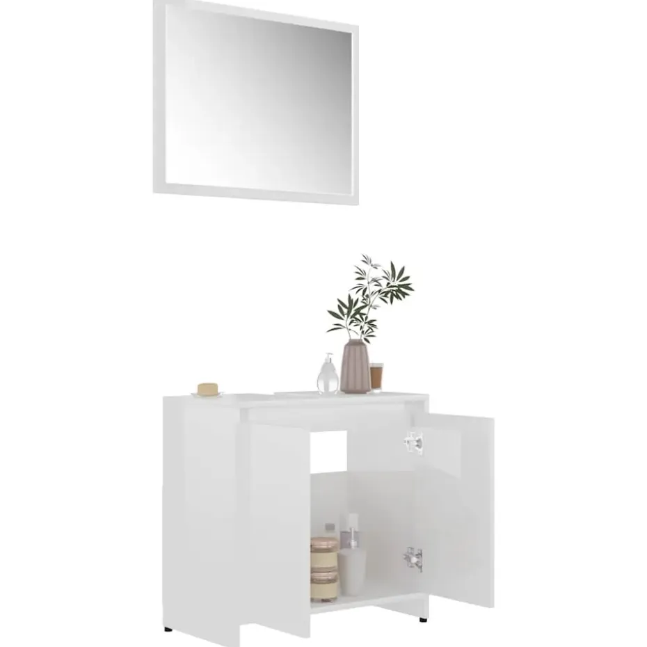 Met deze stijlvolle badkamermeubelset kan je extra opbergruimte in je badkamer creëren. Door de strakke lijnen en het strakke ontwerp past hij perfect in je badkamer.