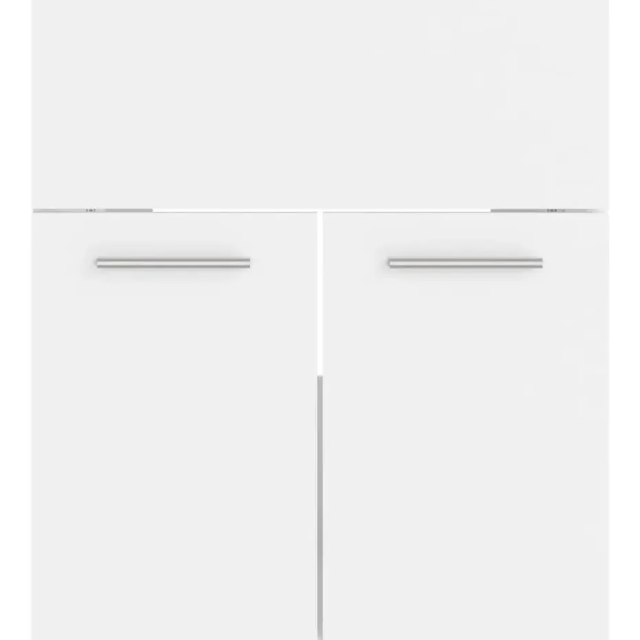 De meubelset bestaat uit een wastafelkast met een wasbak, 2 hoge kasten en een spiegel. De chique wastafelkast heeft 1 vak en past perfect onder je wastafel, waardoor hij heel handig is. De wastafel is gemaakt van keramiek en dient niet alleen als product voor dagelijks gebruik, maar ook als versiering in je leefruimte. Dankzij zijn trendy en eigentijdse ontwerp past deze wastafel beslist in elk interieur. De overloop zorgt ervoor dat de bak nooit kan overlopen. Elke hoge kast heeft in totaal 5 vakken en 2 deuren, waardoor er voldoende ruimte is om spullen in je badkamer op te bergen. De spiegel geeft je interieur een prachtige uitstraling. Deze badkamerset is gemakkelijk schoon te maken met een vochtige doek.