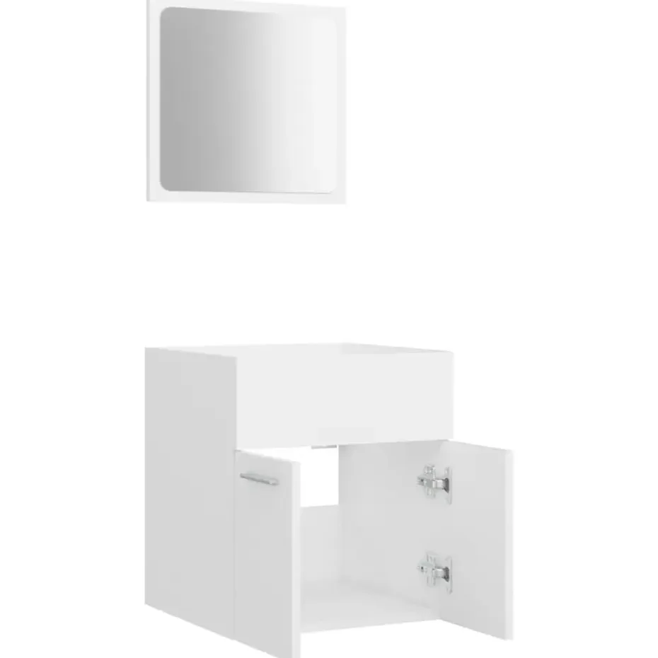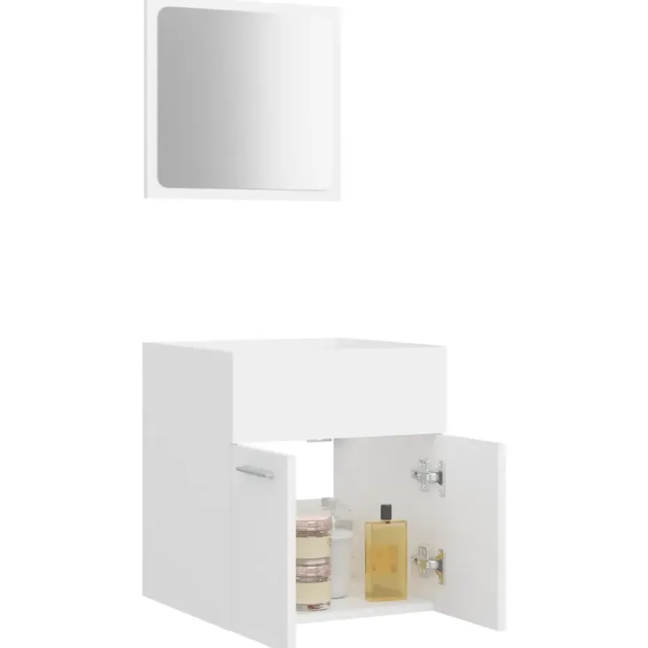 De meubelset, bestaande uit een spiegel en een kast, is gemaakt van duurzaam en stabiel bewerkt hout. Deze chique kast is voorzien van 1 vak en 2 deuren en biedt voldoende opbergruimte om spullen in je badkamer op te bergen. Het blad van het kastje is ideaal om een wasbak te plaatsen. De spiegel geeft je interieur een prachtige uitstraling. Deze badkamerset is gemakkelijk schoon te maken met een vochtige doek.