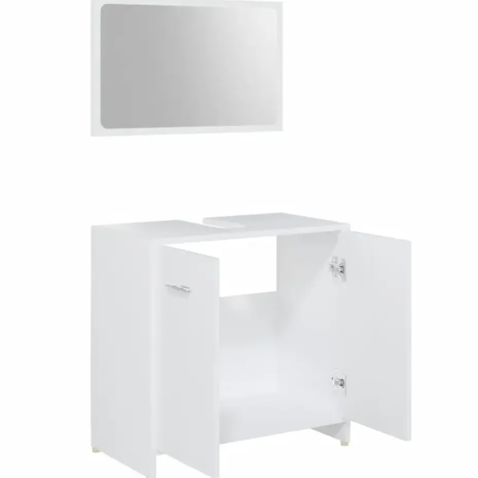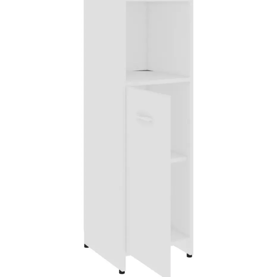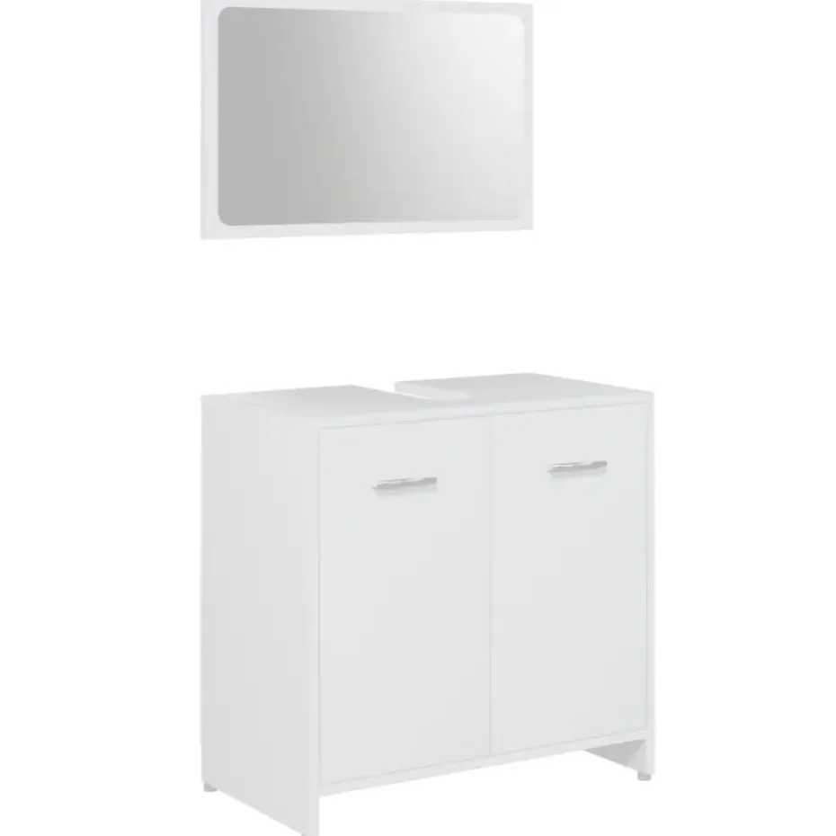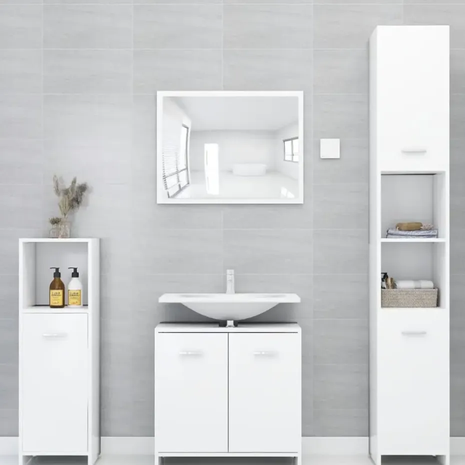 Deze stijlvolle meubelset, bestaande uit 1 hoge kast, 1 medium kast, 1 wastafelkast en 1 spiegel, heeft een prachtige, nette uitstraling en creëert extra opbergruimte in je badkamer.