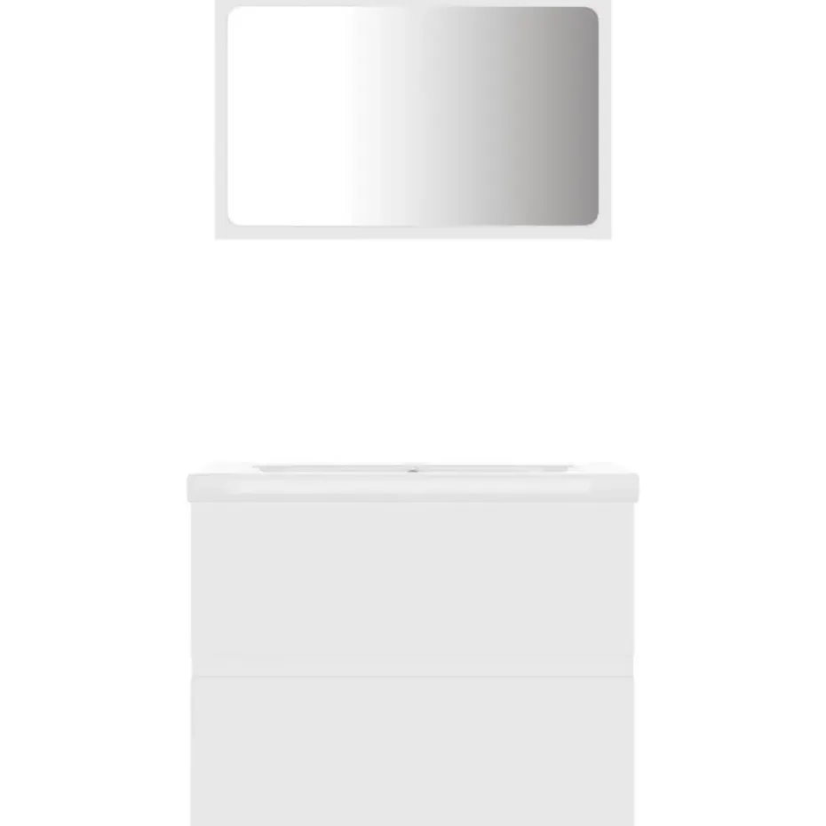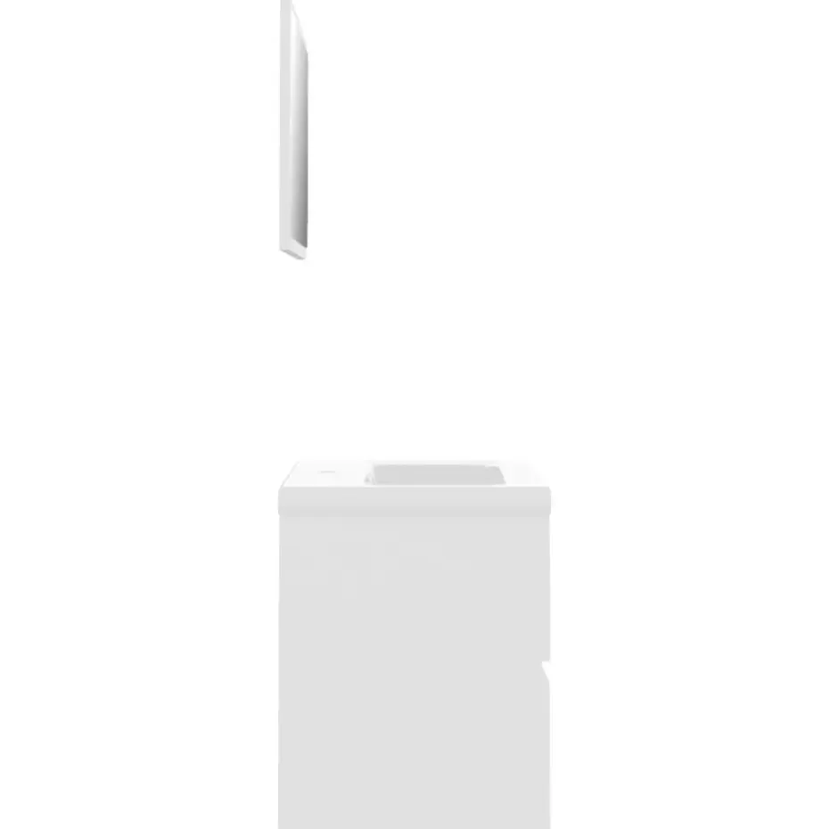 De wastafelkast is gemaakt van bewerkt hout, waardoor hij stevig en stabiel is. De kast heeft 1 lade en biedt voldoende ruimte om spullen in je badkamer op te bergen. Hij past perfect onder de wastafel en maakt opbergen in de badkamer heel handig. De wastafel is gemaakt van keramiek en dient niet alleen als product voor dagelijks gebruik, maar ook als versiering in je leefruimte. Dankzij zijn trendy en eigentijdse ontwerp past deze wastafel in elk interieur. De overloop zorgt ervoor dat de bak nooit kan overlopen. Het geglazuurde oppervlak geeft een modern en elegant tintje aan deze wastafel. De spiegel geeft je interieur een prachtige uitstraling. Deze set is gemakkelijk schoon te maken met een vochtige doek.