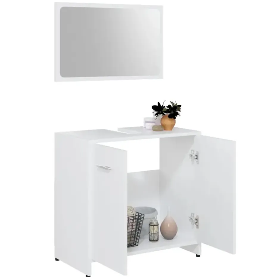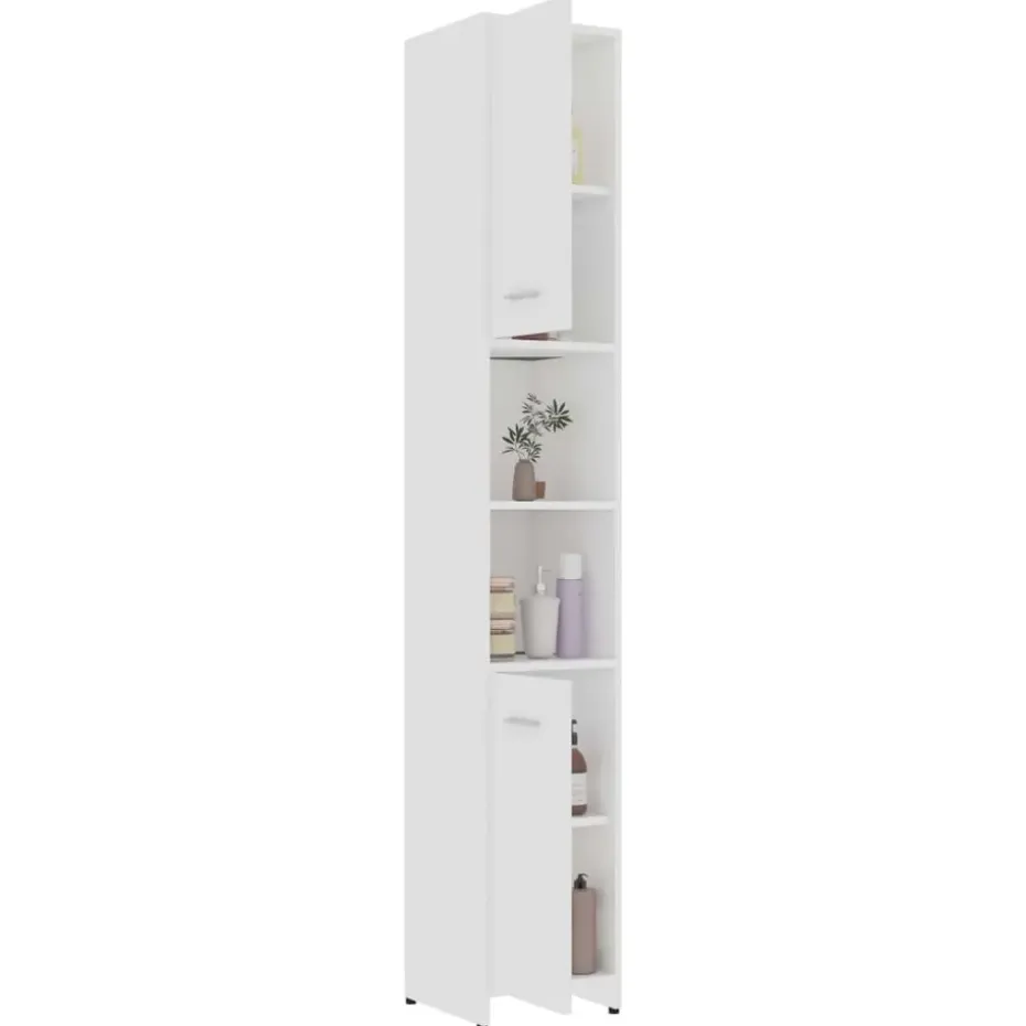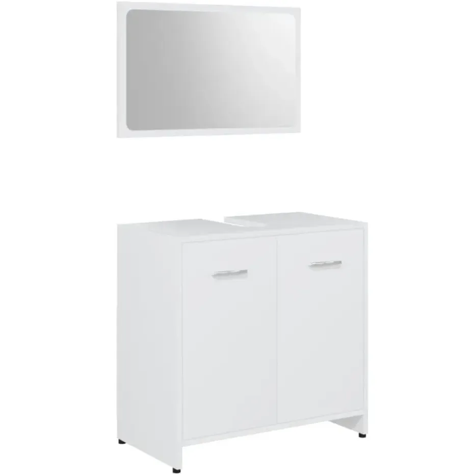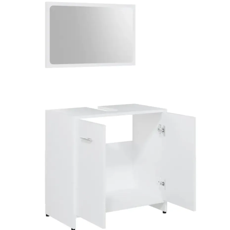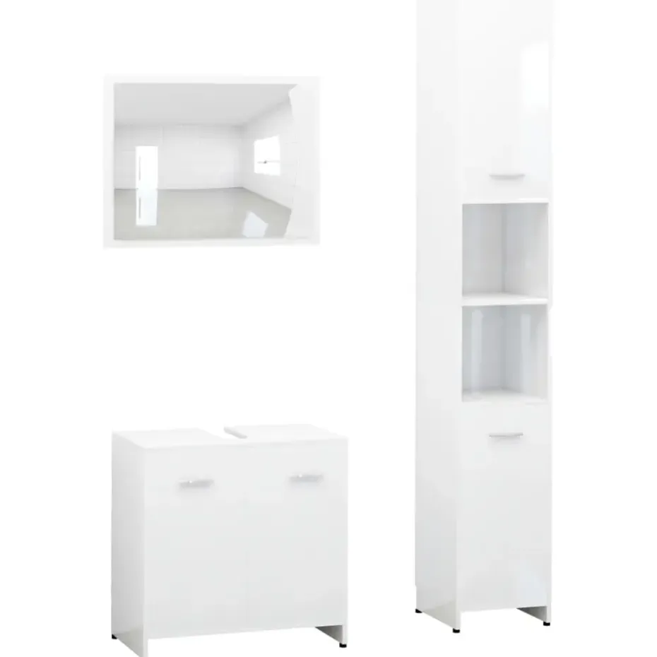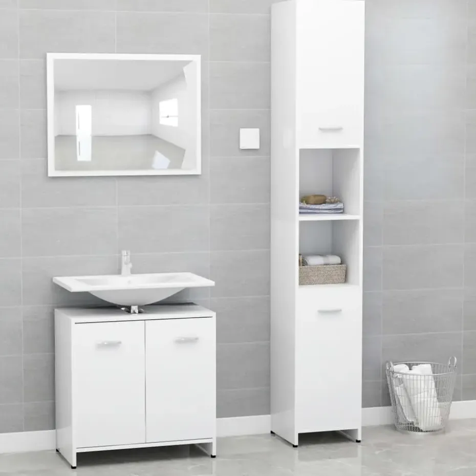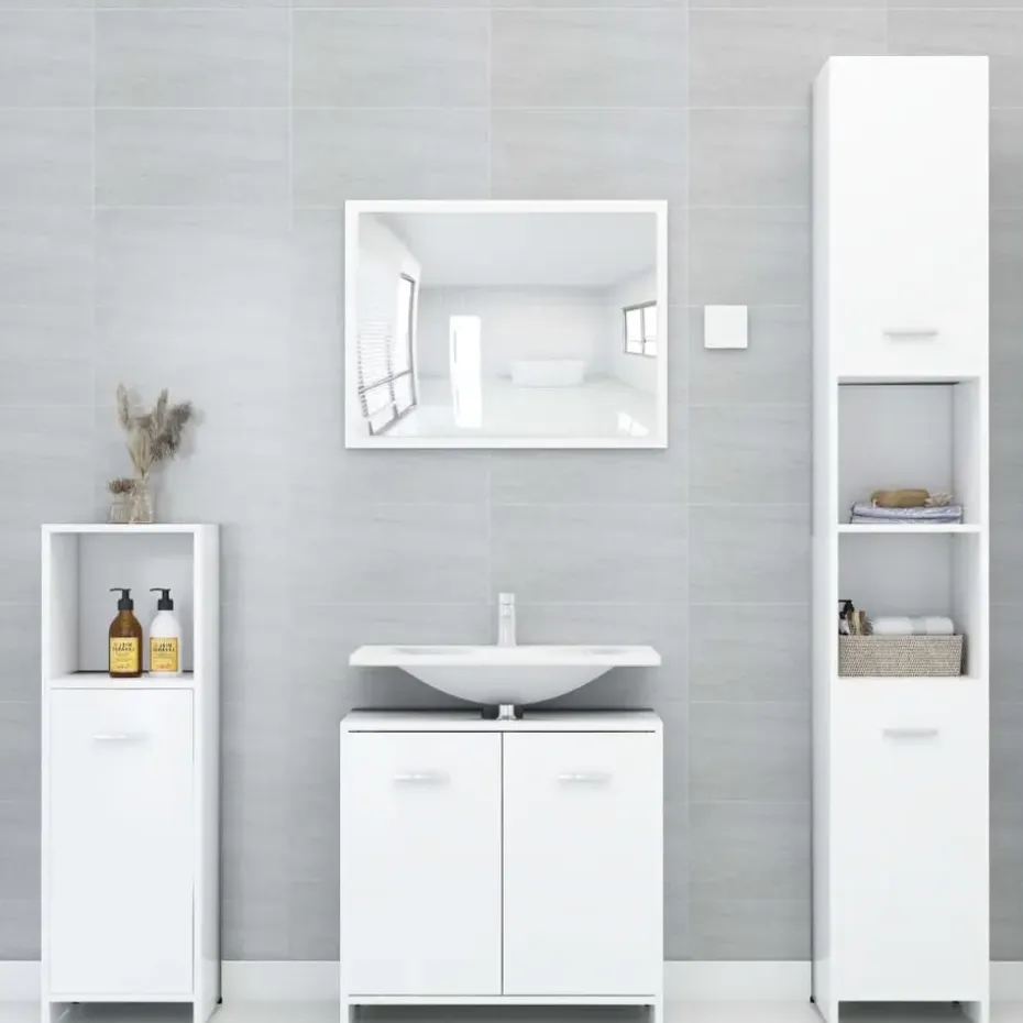 Deze stijlvolle meubelset, bestaande uit 1 hoge kast, 1 wastafelkast en 1 spiegel, heeft een prachtige, nette uitstraling en creëert extra opbergruimte in je badkamer.