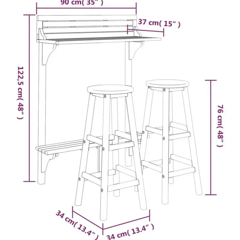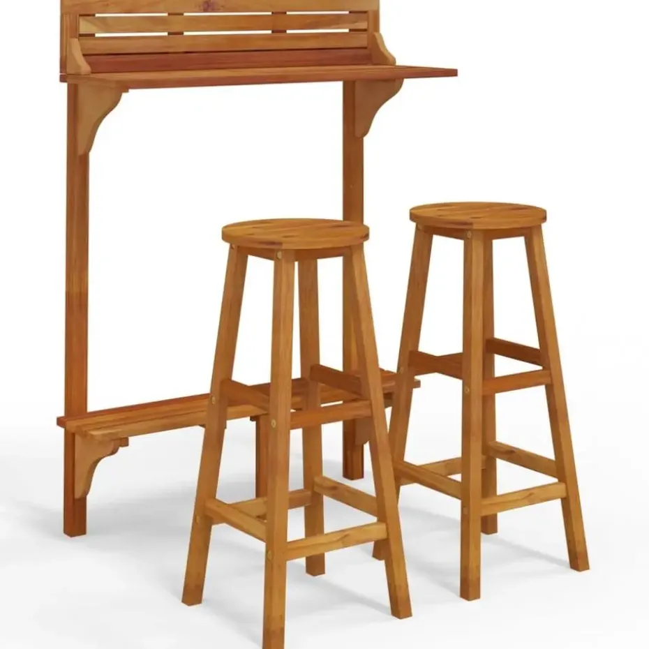 Deze houten balkonbarset heeft een elegant ontwerp en vormt het middelpunt van je tuin, patio of terras.