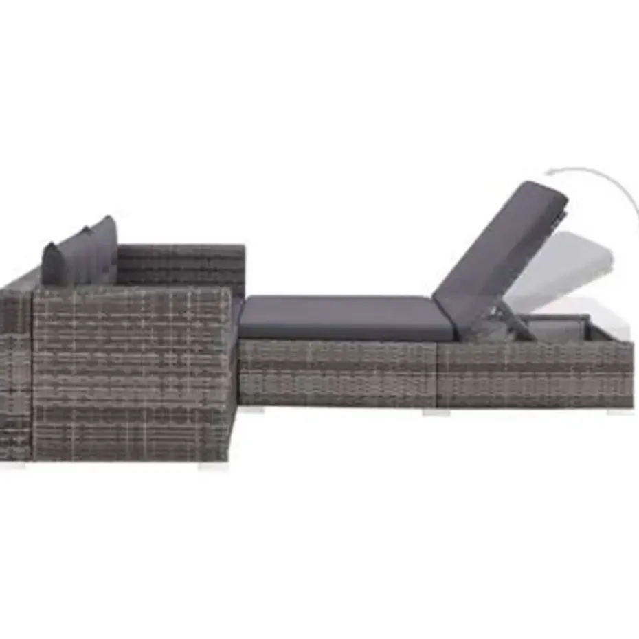 Deze poly rattan bankenset, bestaande uit 2 hoekbanken, 1 ligbed en 5 kussens, is een stijlvolle loungeset voor je tuin of terras.