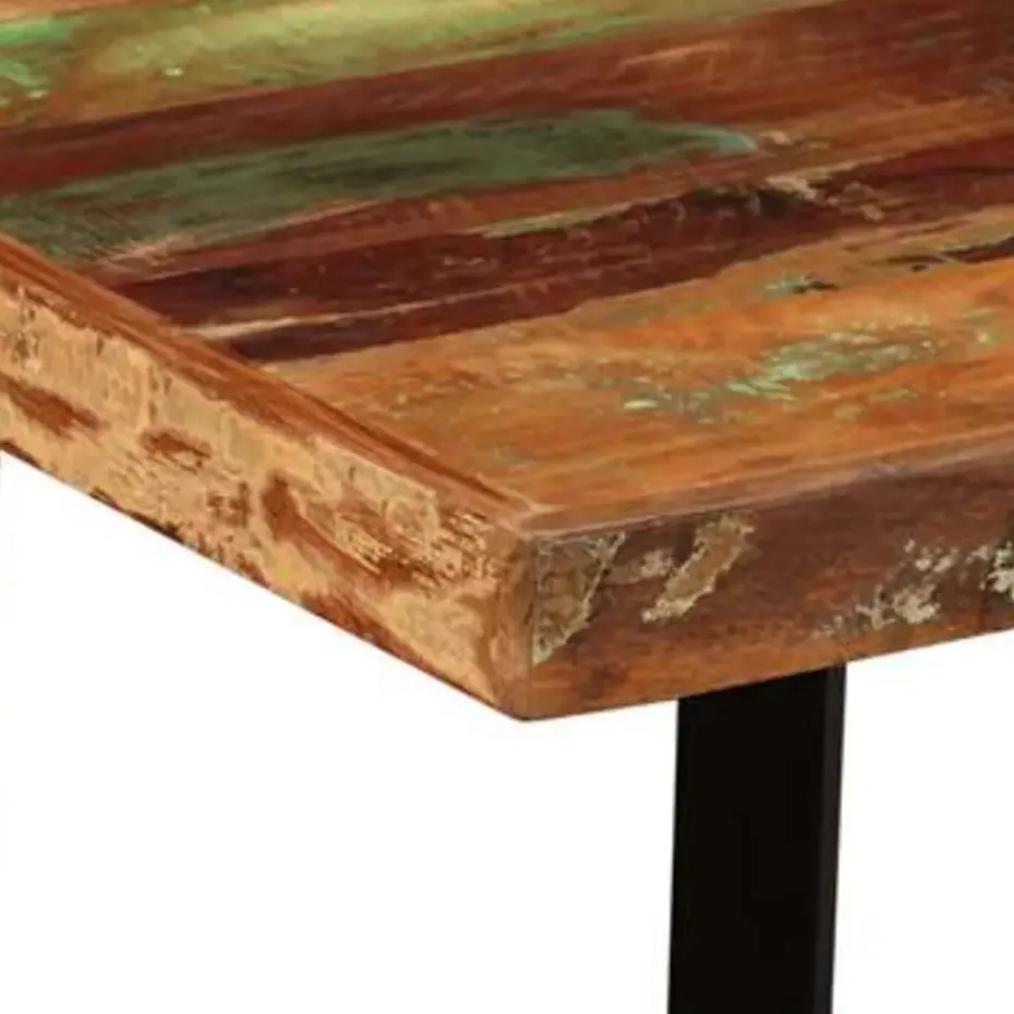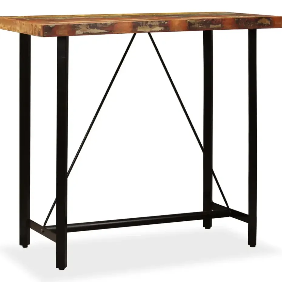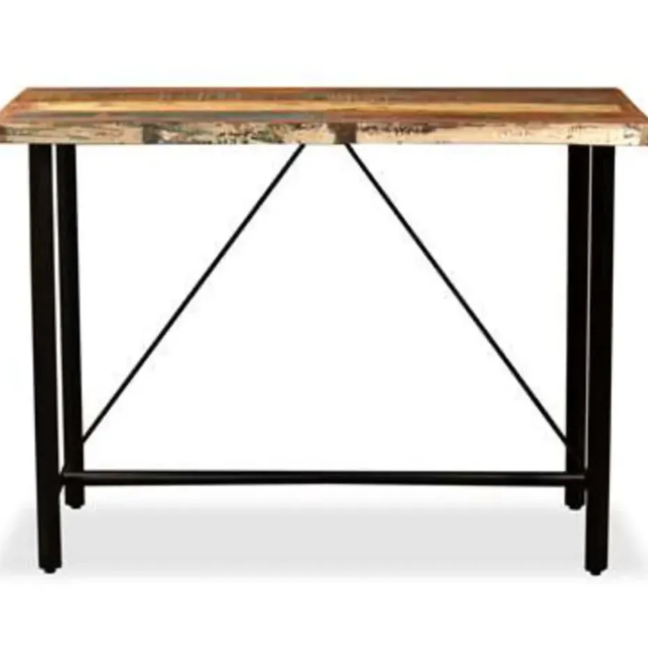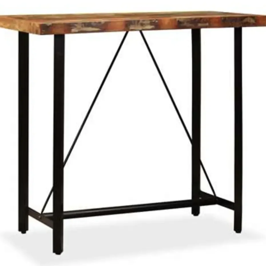 De bartafel is vervaardigd van massief gerecycled hout, wat wil zeggen dat hij de eigenschappen van verschillende houtsoorten heeft zoals teakhout, mangohout en acaciahout. Gerecycled hout is sterk, stevig, duurzaam en mooi. De tekenen van slijtage geven aan ieder stuk een unieke uitstraling en de stalen frames verhogen de spectaculaire industriële stijl. Iedere stap in het constructieproces wordt met de grootste zorg uitgevoerd, of het nu samenvoegen, polijsten, verven of lakken is. Montage is eenvoudig.