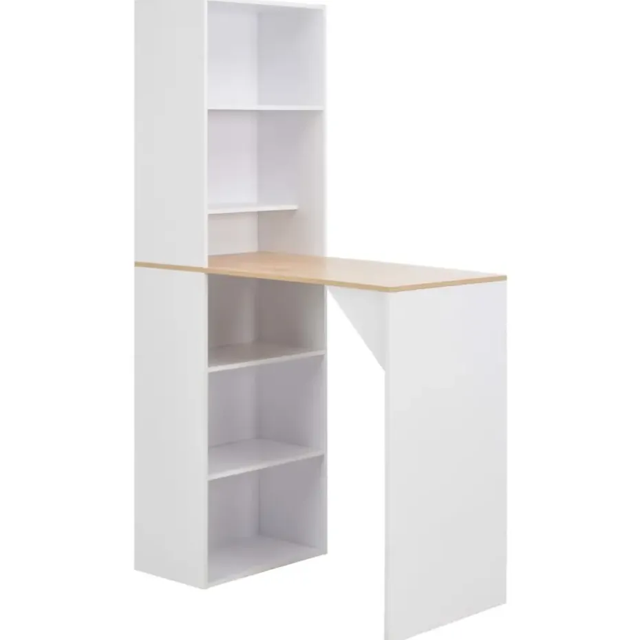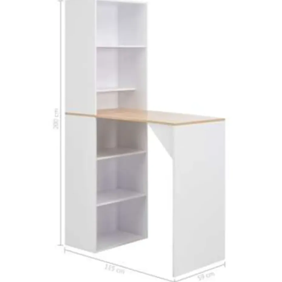 Dankzij de grote opbergkast is er voldoende ruimte voor het plaatsen van flessen wijn en andere spullen. Dankzij het stevige bewerkte hout is de tafel duurzaam, stabiel en gemakkelijk te reinigen. Het L-vormige frame maakt de tafel zeer stabiel. Je zult zeker meer genieten als je wijn of koffie drinkt aan deze prachtige bartafel.
