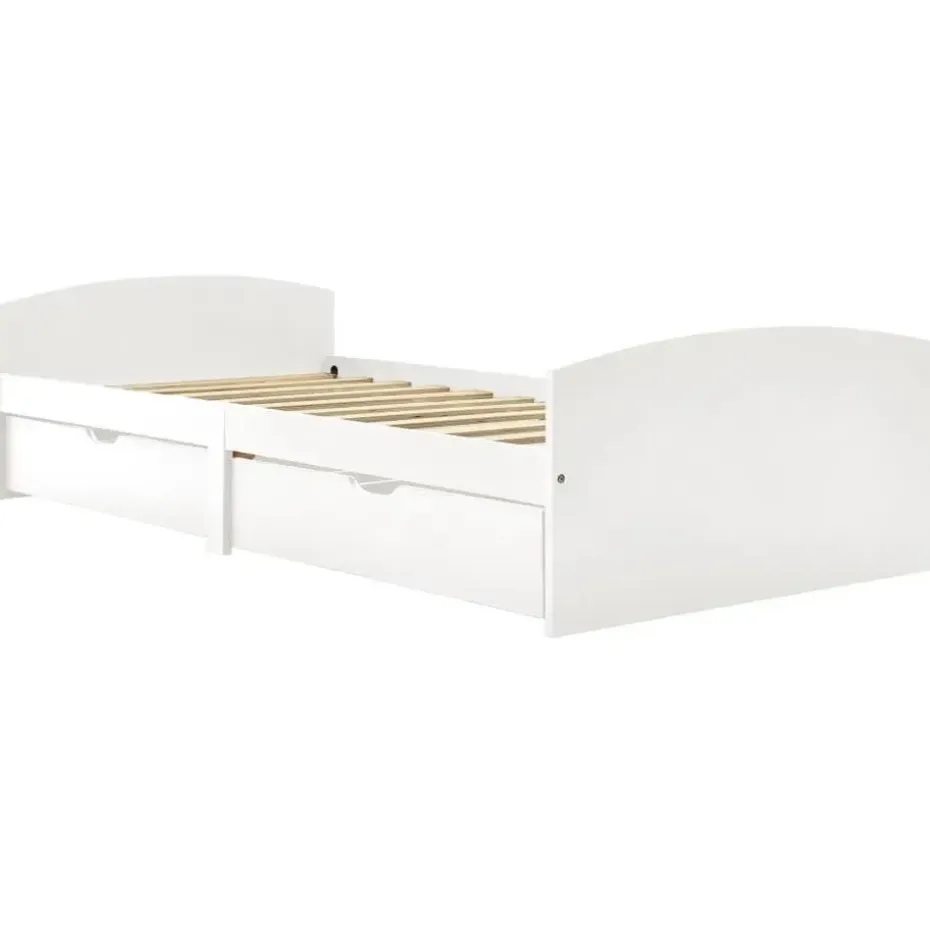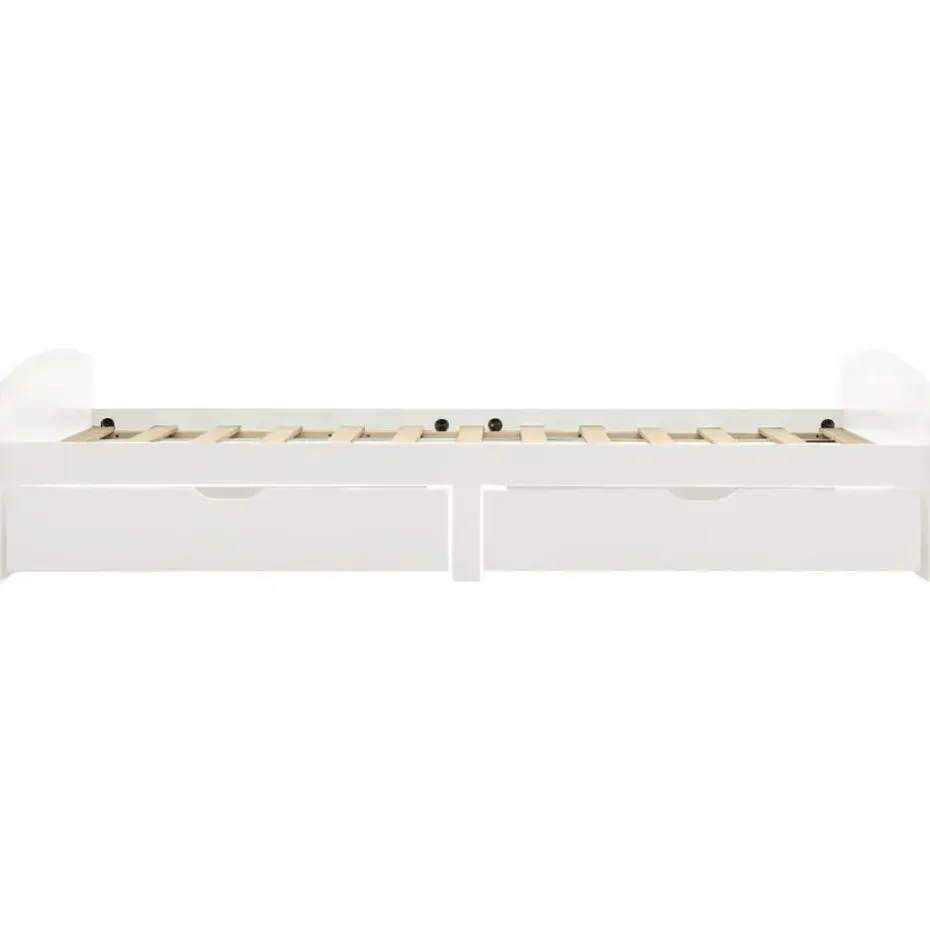 Dit bedframe is gemaakt van massief grenenhout en is dus buitengewoon stevig en duurzaam. De stevige lattenbodem biedt de nodige ondersteuning en is bovendien zeer comfortabel. De 2 inbegrepen bedlades bieden voldoende ruimte voor het opbergen van opgevouwen kleding, speelgoed enz., zodat je kamer netjes en opgeruimd blijft. De soepel rollende wielen werken zowel op tapijt als op houten vloeren. Met al deze gecombineerde functies kun jij genieten van een goede nachtrust!