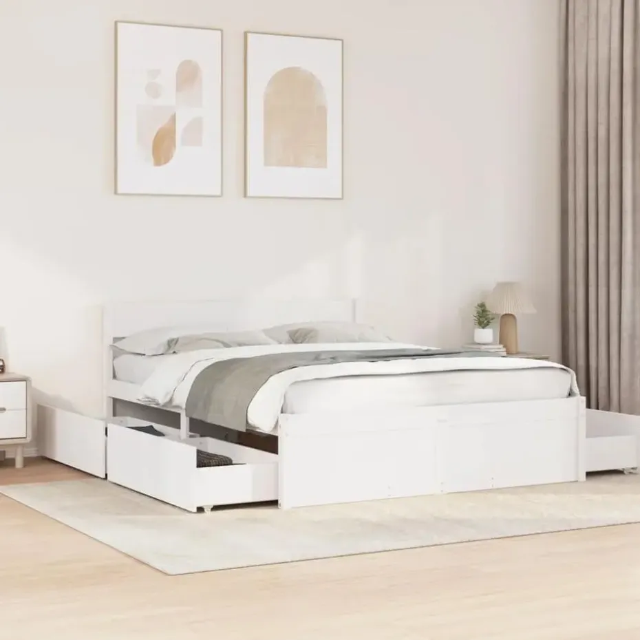 Voeg een modern tintje toe aan je slaapkamer met dit bedframe met lades! Het is een praktische en decoratieve aanvulling op je woonruimte.