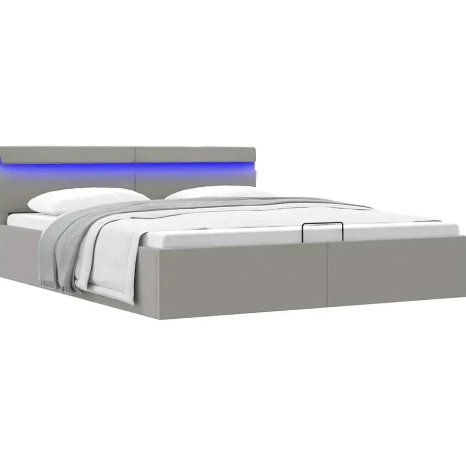 Het gepoedercoat stalen frame en de multiplex lattenbodem dragen bij aan de stevigheid en duurzaamheid van het bed. Het is bekleed met duurzame stof waardoor het bed een uitnodigende uitstraling heeft. Dit slaapkamermeubel is geschikt voor een matras van 180 x 200 cm. Bovendien kunt u met de afstandsbediening eenvoudig het vermogen, de helderheid en verschillende knipperende kleuren van de LED-lichtstrip aanpassen om een verbluffende lichtshow te creëren.