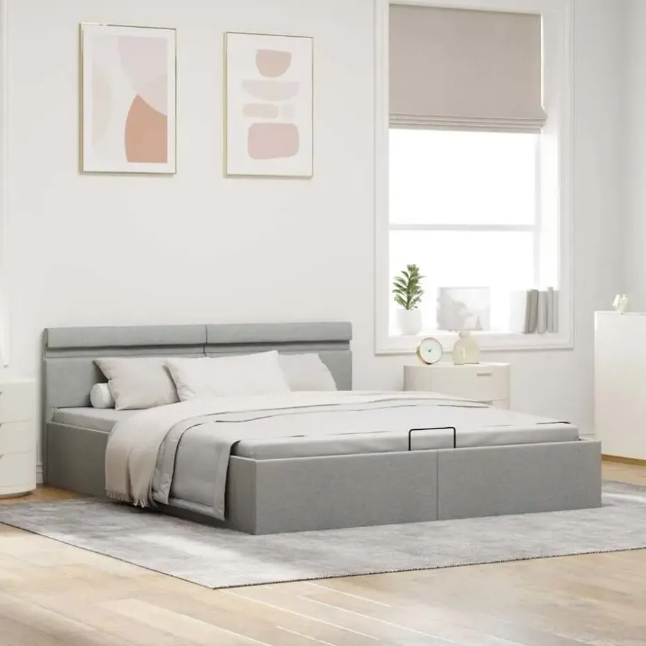 Dit beklede bed verandert de ongebruikte ruimte onder je matras in opbergruimte. Zo heb je voldoende ruimte voor het opbergen van kleding, dekens, beddengoed, enz. Het hydraulische frame blijft omhoog staan als hij omhoog is getild, zo heb je beide handen vrij om spullen op te bergen of te pakken.
