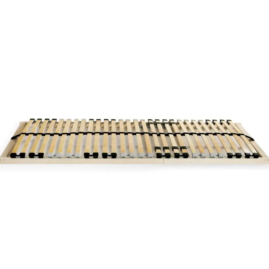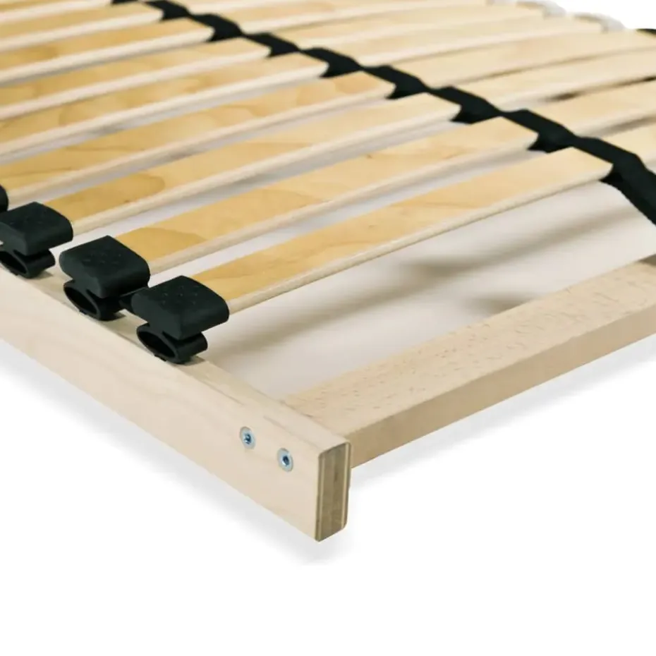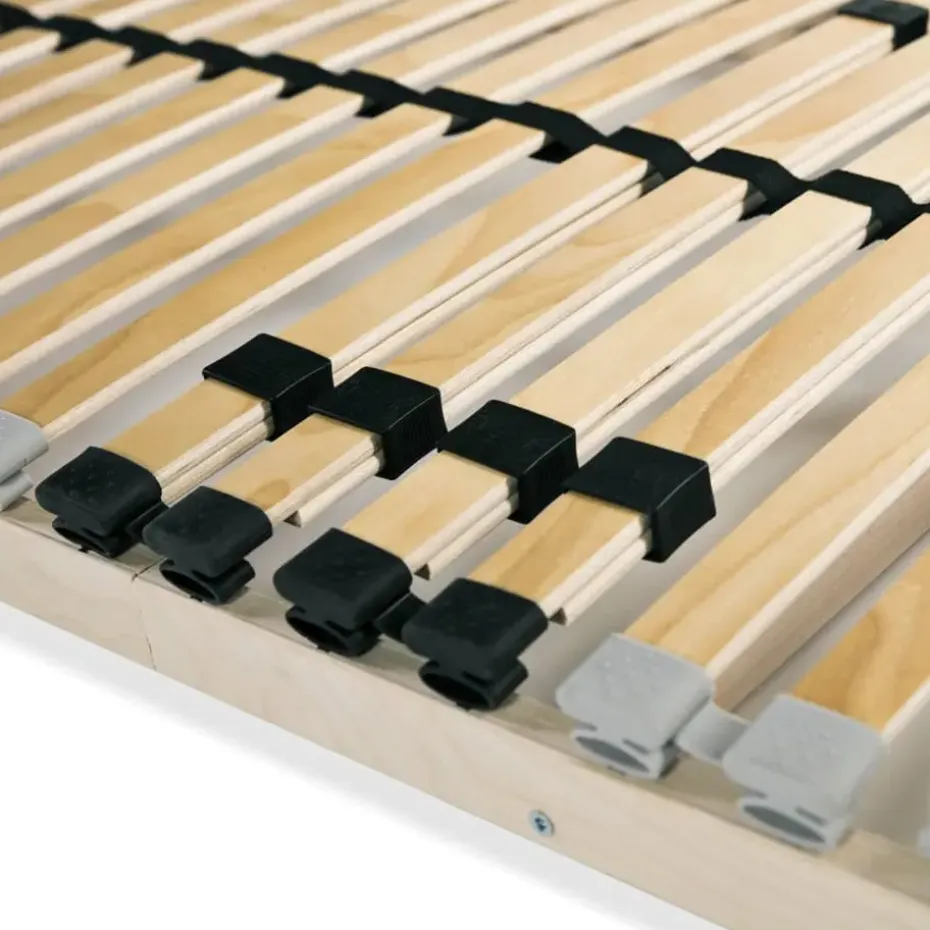 Met een massief beukenhouten frame en berkenhouten latten is de bedbodem robuust en duurzaam. De 7 comfortzones bieden optimale ondersteuning voor je lichaam. Beide uiteinden van de latten worden op hun plaats gehouden door SBS rubberen doppen voor een betere stabiliteit van de hele constructie. Dankzij de 4 verstelbare, dubbele latten in de middenzone, kan de stevigheid van de bodem aan je behoeften worden aangepast. Montage is eenvoudig.