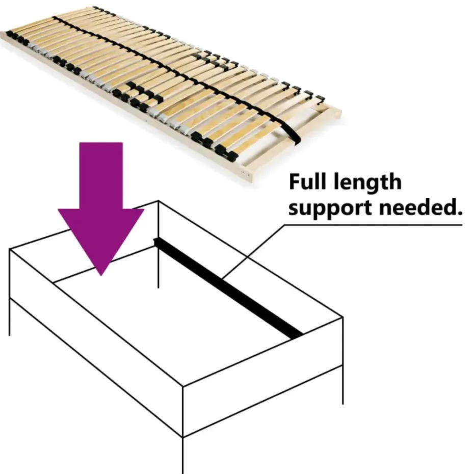 Let op, de levering bevat alleen een lattenbodem. Een matras en een bedframe zijn niet inbegrepen.