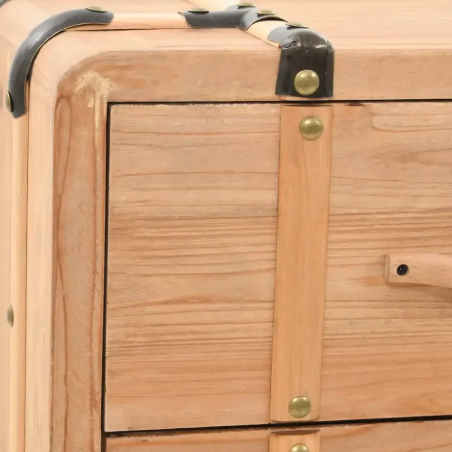 Deze houten ladekast in retro stijl ademt een rustieke charme uit die een decoratieve toevoeging is aan je slaapkamer- of woonkamerinrichting.