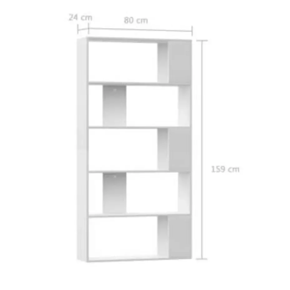 De kast is gemaakt van bewerkt hout waardoor hij stevig en duurzaam is. De boekenkast heeft 5 ruime vakken en biedt voldoende ruimte om tijdschriften, boeken, dvd’s, multimedia-apparaten en decoratieve spullen goed georganiseerd en binnen handbereik te houden. Het meubel is zeer veelzijdig, omdat het ook als kamerscherm gebruikt kan worden. Het is geschikt voor in je gang of andere woonruimte.
