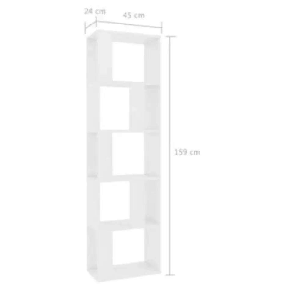 De kast is gemaakt van bewerkt hout waardoor hij stevig en duurzaam is. De boekenkast heeft 5 ruime vakken en biedt voldoende ruimte om tijdschriften, boeken, dvd’s, multimedia-apparaten en decoratieve spullen goed georganiseerd en binnen handbereik te houden. Het meubel is zeer veelzijdig, omdat het ook als kamerscherm gebruikt kan worden. Het is geschikt voor in je gang of andere woonruimte.