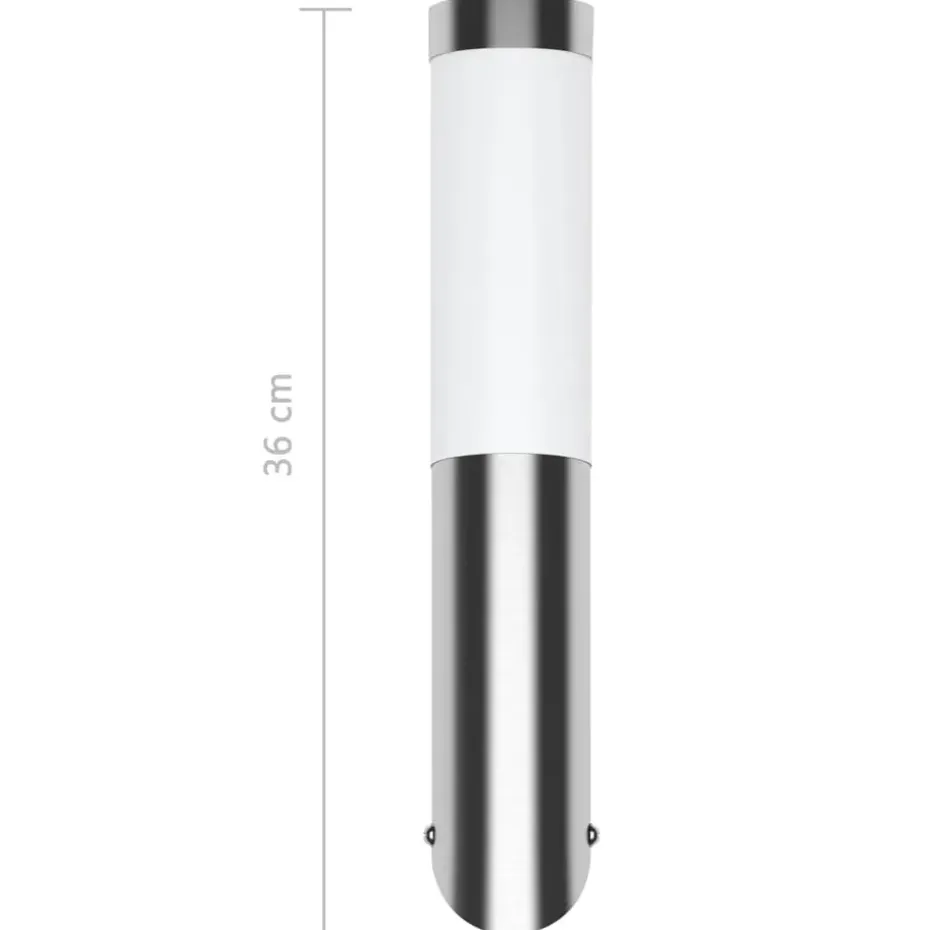 Deze moderne buitenverlichting heeft een waterdichte RVS behuizing en een opaal kunststof venster voor een mooi sfeerlicht dat niet verblindt. De buitenlamp kan gemakkelijk aan de muur worden bevestigd doormiddel van de twee meegeleverde schroeven. Tevens is de buiten lamp ook geschikt voor LED lampen.