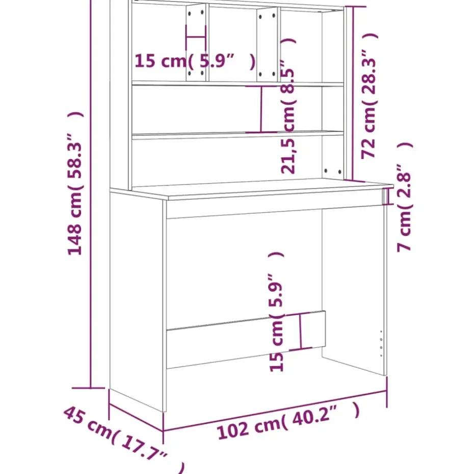 Dit bureau met schappen is zowel een praktische als een decoratieve keuze voor je woonruimte.