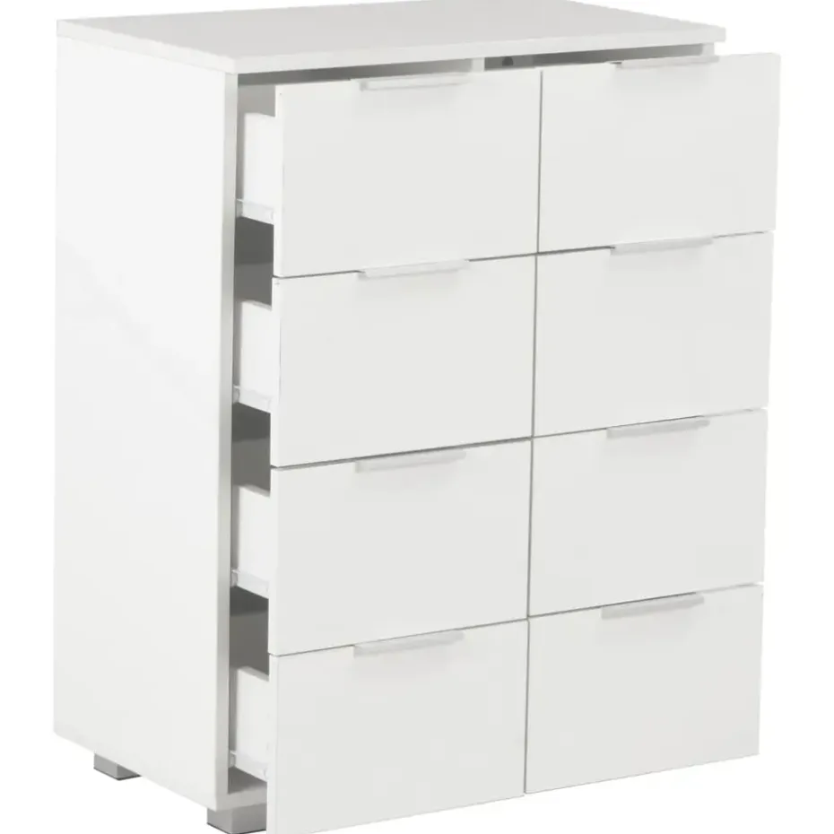 De ladekast is gemaakt van bewerkt hout met een hoogglans afwerking, waardoor hij er verfijnd uitziet en buitengewoon stabiel en duurzaam is. Bovendien heeft het dressoir 8 lades, waardoor er voldoende opbergruimte is voor verschillende spullen en je kamer netjes en opgeruimd blijft. Deze hoogglans opbergkast is eenvoudig te reinigen.