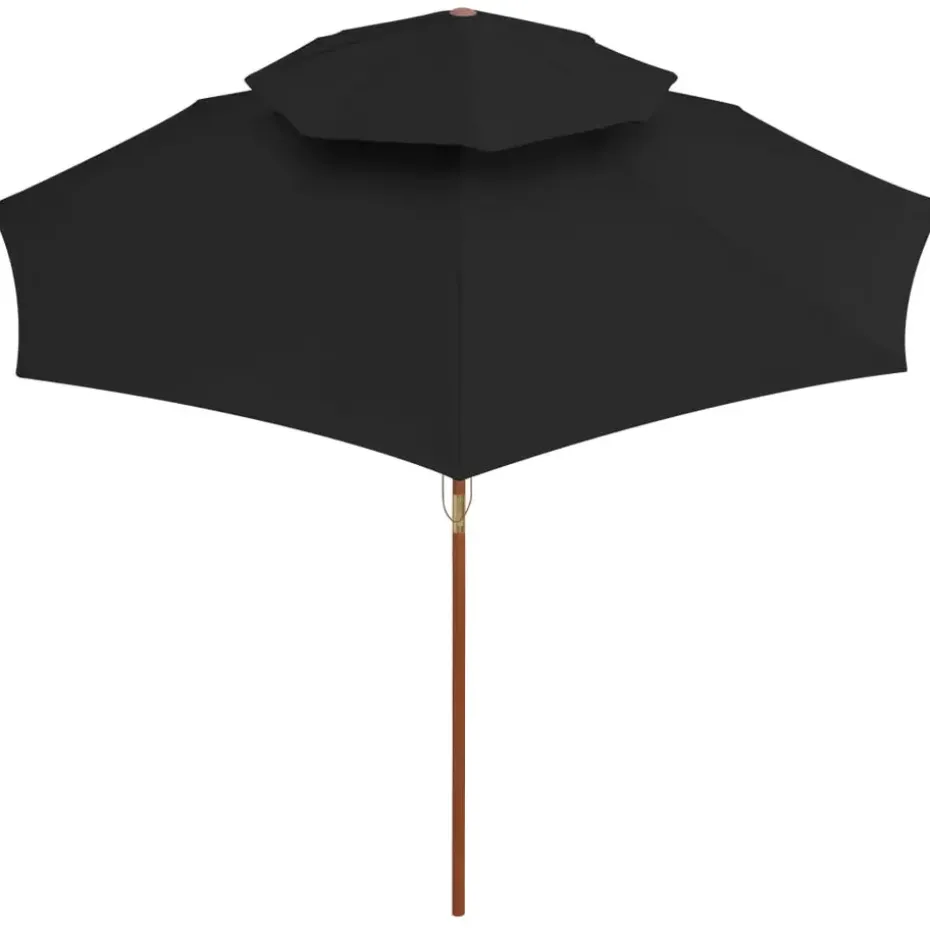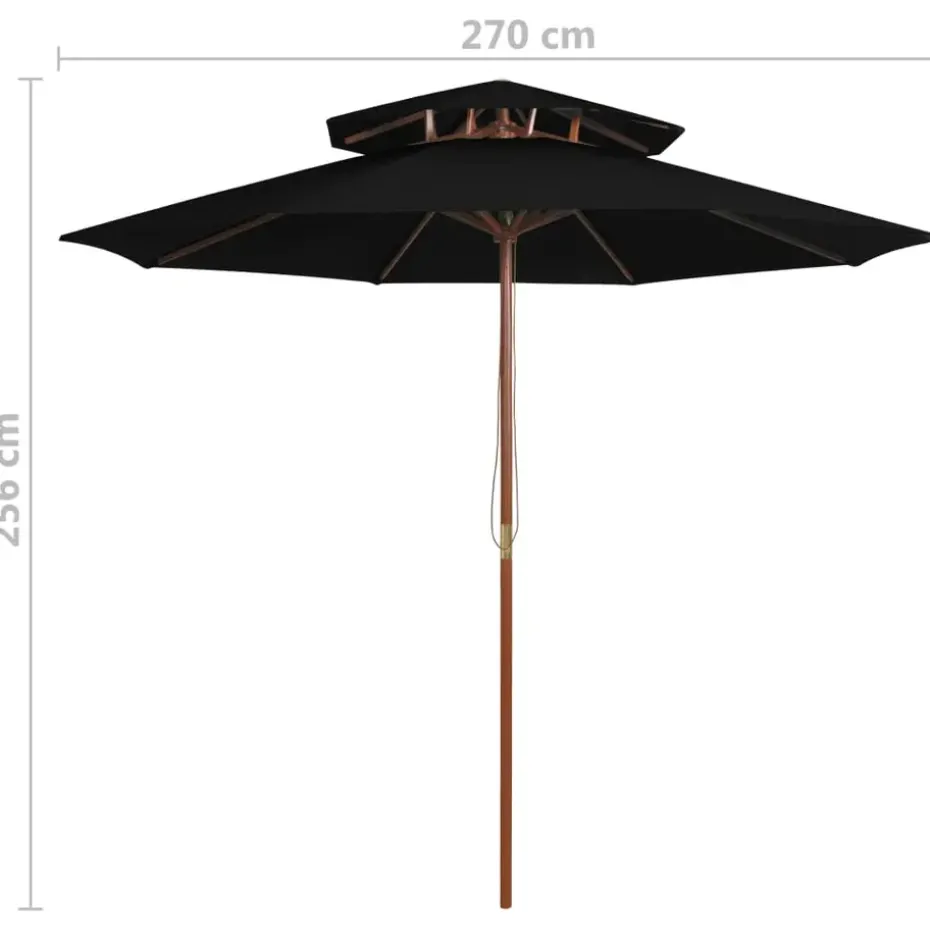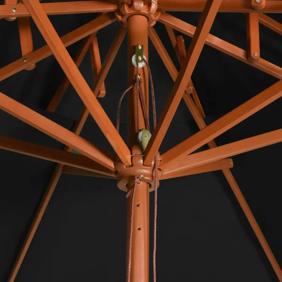 Het parasoldoek is gemaakt van uv-beschermend en anti-vervagend polyester waardoor het je optimale bescherming tegen de zon biedt en het gemakkelijk schoon te maken is. De paaldiameter is 38 mm waardoor hij in een bestaande voet of in het midden van een tafel geplaatst kan worden. De sterke houten paal en de 8 duurzame baleinen maken de parasol zeer stabiel en duurzaam. De dubbele constructie zorgt voor luchtcirculatie op hete dagen. Deze tuinparasol kan eenvoudig geopend en gesloten worden dankzij het eenvoudige katrolsysteem.