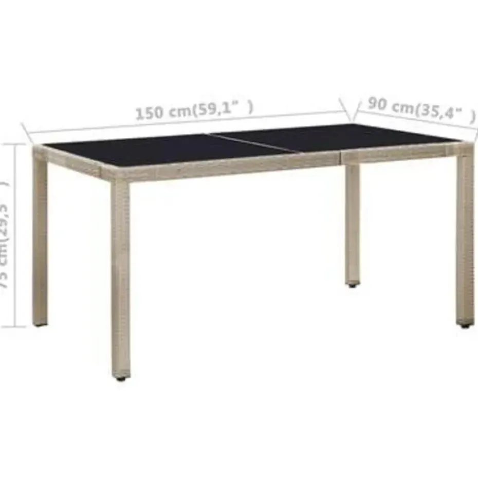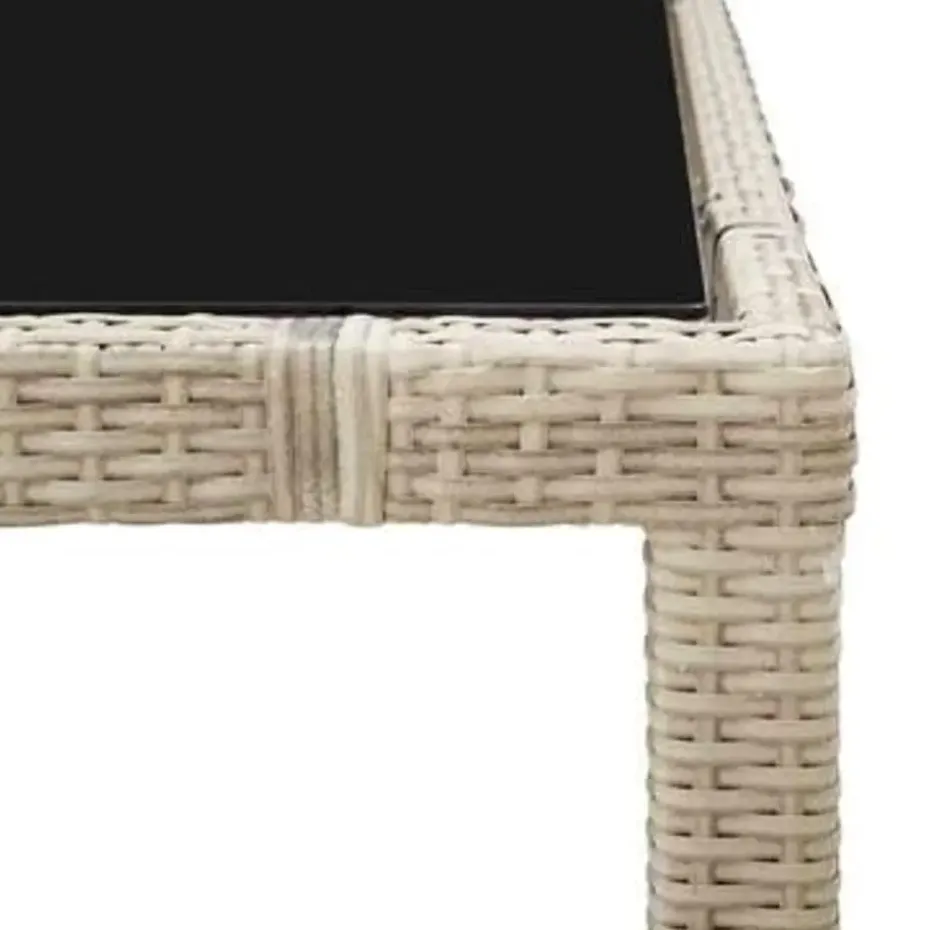 - Materiaal: PE-rattan, glazen tafelblad en gepoedercoat stalen frame